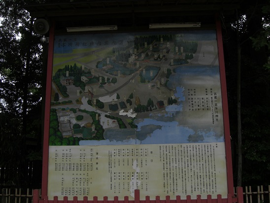 ところで氷川神社には2,000年以上の歴史のある社だから、当然神社保有の自慢の文化財の一つや二つは歴史と格式のある神社ならば存在するし、それが神社の風格、重みに繋がるものだ。しかしこの社にはそれがまったく存在しない。正確にいうと埼玉県指定有形文化財として氷川神社行幸絵巻(附原本、下絵)があるのみだ。鹿島神宮には国宝の布都御魂を保有しているし、氷川女体神社は、鎌倉~室町期の文化財を社宝として多く蔵することから「埼玉の正倉院」と称されることに対してあまりにも対照的だ。