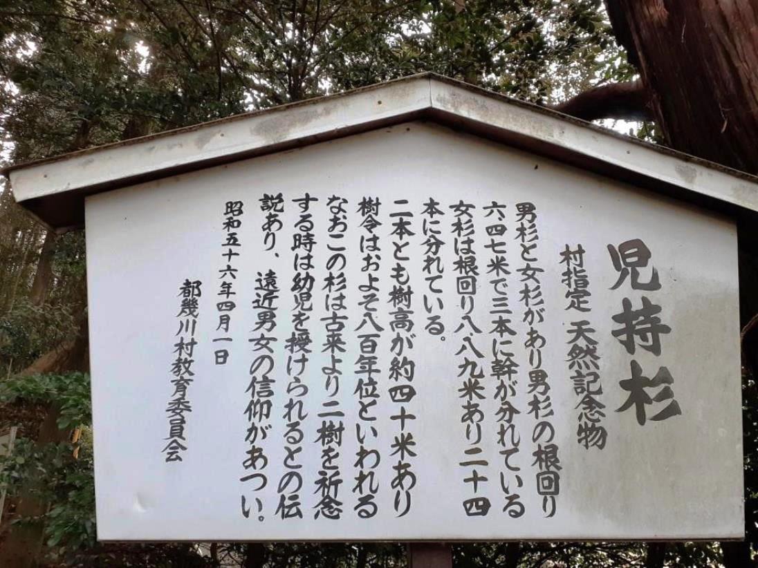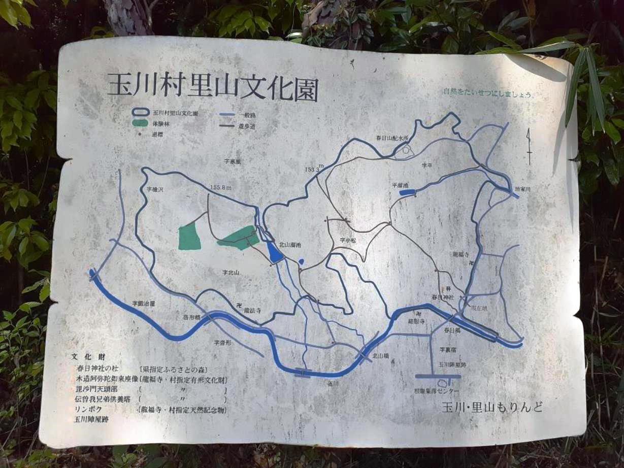 境内東側隅に設置されている「玉川村里山文化圏」と「玉川村春日神社ふるさとの森」の案内板