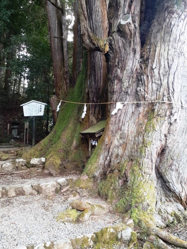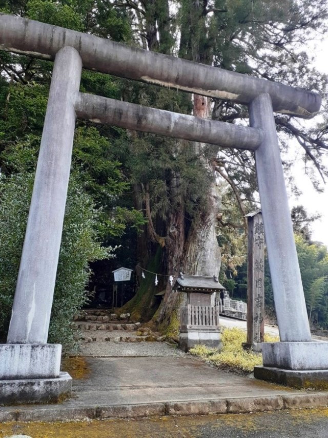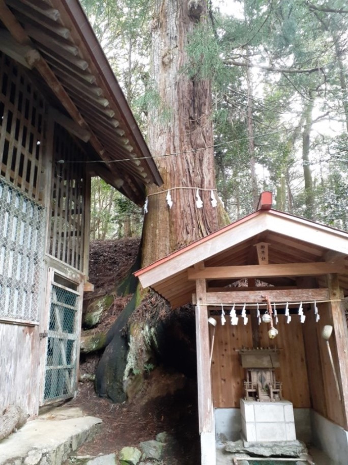 写真の順番が前後してしまうが、本殿から東側にある石段を下る際に、振り返り撮った一枚である。正面の巨石はかなりの崩壊が進んでいるが、一枚岩のようでもある。この巨石の左側に拝殿があるわけであるが、拝殿と本殿を分断するかのようにどっしりとした重厚な存在感は、写真以上にかなりのインパクトがある。