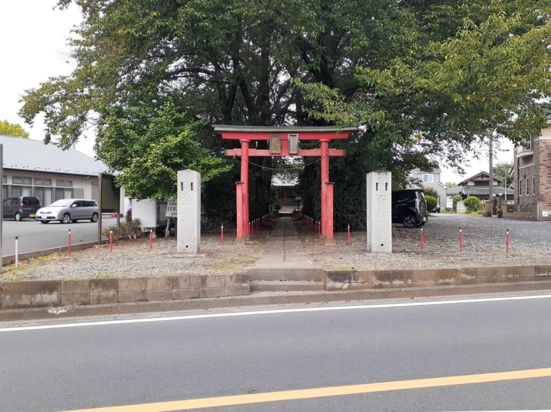 瓦葺氷川神社の南方にある「尾山台団地」方向に進路をとる。国道16号線の高架橋を潜った先は左カーブするが、道なりに進路をとると、団地に達する丁字路となり、そこを右折し、すぐ先にある「尾山台団地」交差点を左折する。同団地の中央部を東西に走る道を東方向に進行、JR東北本線の踏切を越え500m程進むと左手に「原市九区自治会館」、隣接するように瓦葺稲荷神社が見えてくる。