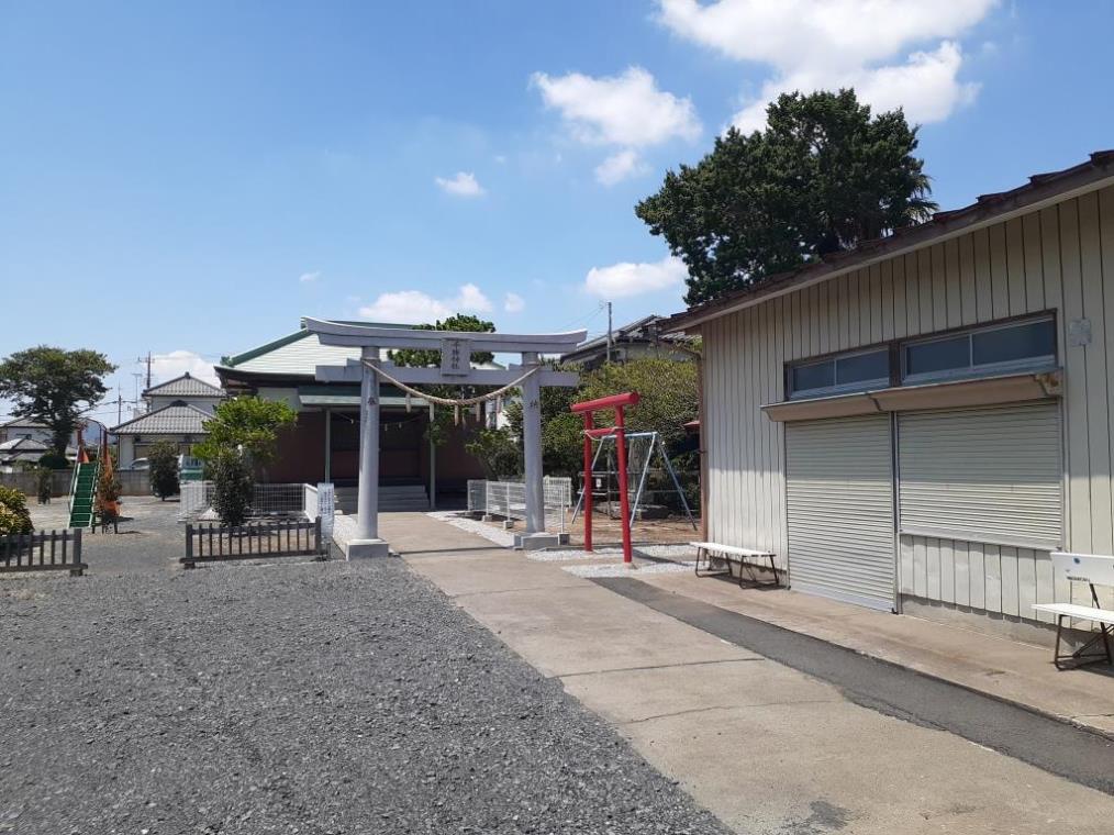 氏子区域は近世の下清久村を引き継ぐ大字下清久で、総代は、氏子を「上」「中」「本村」「宮守」「新田」の五つの村組に分けて、各一名ずつの計五明で選出され、人気三年で神社運営に当たるという。このほか「行事」と呼ばれる当番が、家並み順に二名ずつ計一〇名選出され、夏祭りの準備や境内の清掃を担うとのことだ。