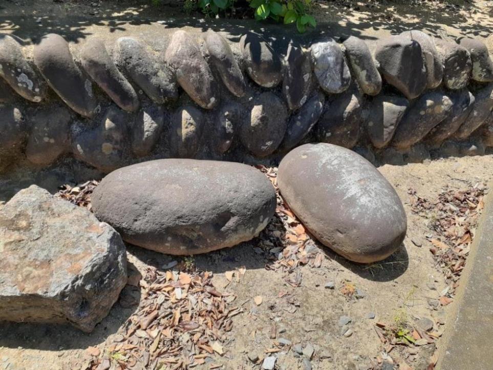 「諏訪大社参拝記念碑」の左側にある力石二基