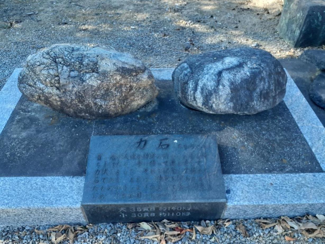 左側の石の重量・38貫目、約140㎏。右側の石の重量・30貫目、約110㎏。
