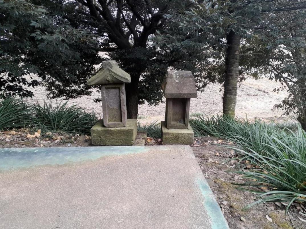 拝殿左側には正一位稲荷神社・伊勢太々御神楽碑 拝殿右側に祀られている石祠二基