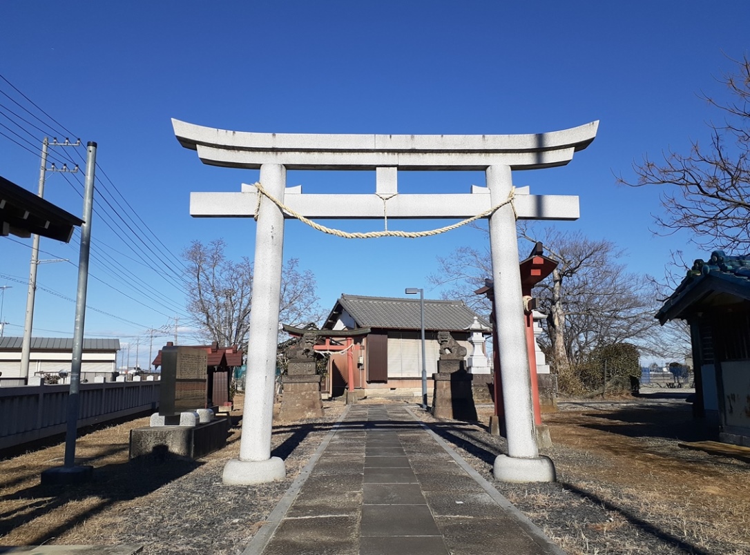 新川用水(騎西領用水)のすぐ南側に鎮座する社