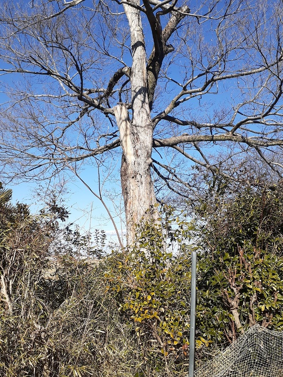社殿左側にはこのような大木が聳え立つ(写真左・右)。周りを網で覆っている。