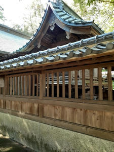 神門脇に佇む八幡・雷社        拝殿脇には祠あり
