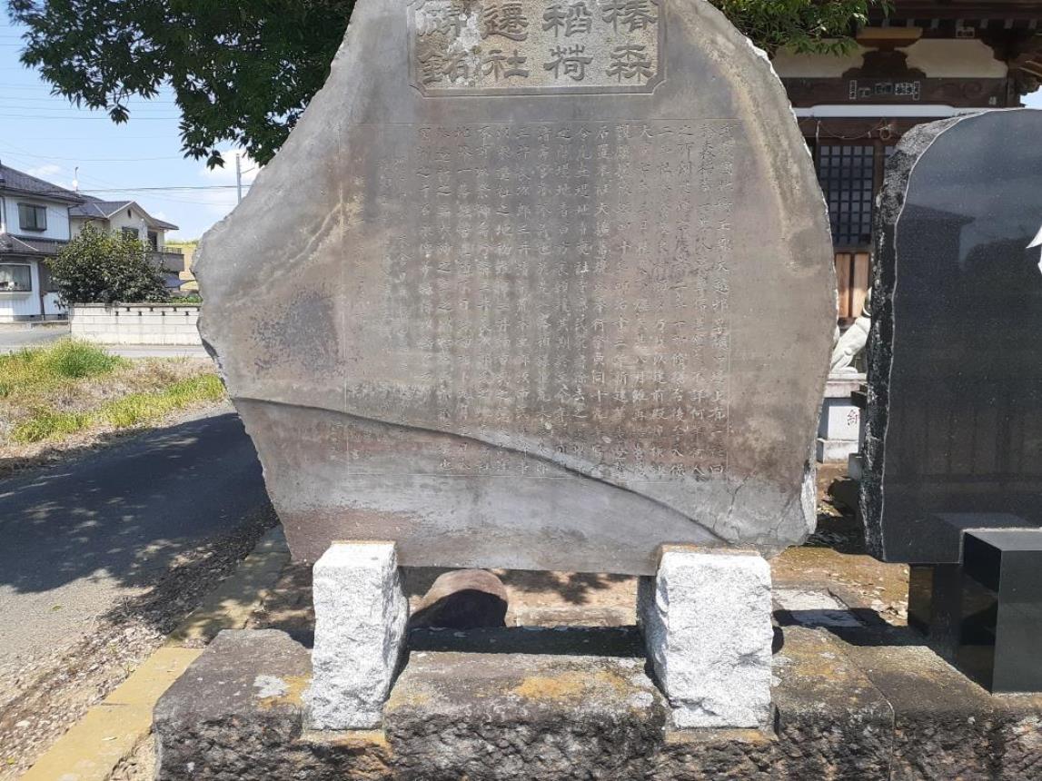 鳥居の左側に設置されている案内板 鳥居・社号標柱の右側にある「鷲明神社記恩碑」