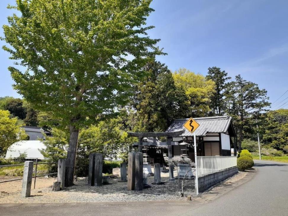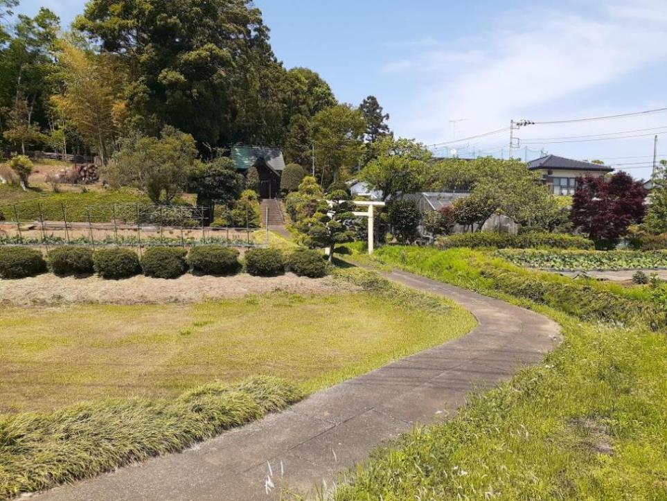 この真っ直ぐに伸びていない参道と周囲の田畑風景、加えてその先に見える純白な鳥居が絶妙にマッチしている。遠くから見える社殿手前の石段の按配もまた良し。近隣の人々が大切に管理しているのが分かるように小高い地に南向きに鎮座しているその眺めもいう事ない。正直北吉見地域の中でも東北端部に位置し、目立たない地に鎮座しながらも、周囲一帯のどかな風景の中に溶け込み、それでいて存在感のある社。
