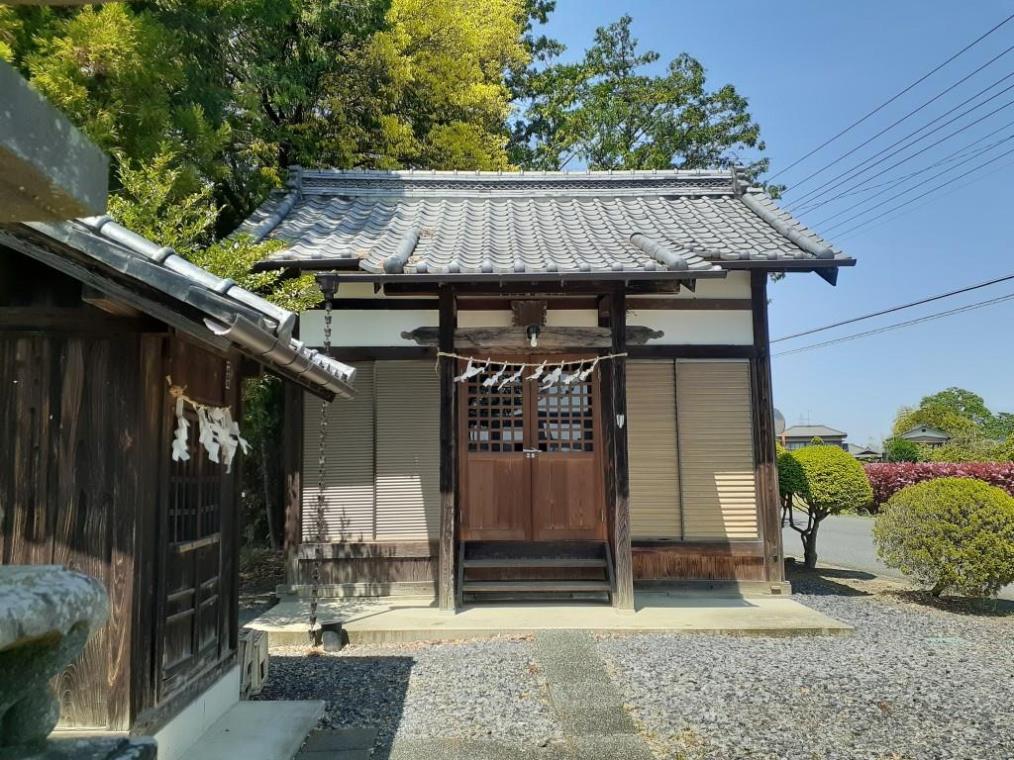 八反田の地は、もと旧柚沢村の小名の一つで、周囲が小高い丘となった小盆地状の中に民家が点在している。隣地の根古屋などとともに松山城跡地に当たり、正保から元禄期(一六四四〜一七〇四)にかけて久米田村から分村した。当社は、現在八反田の鎮守であり天照皇大神を祀る。その創祀由来は口碑によると、江戸時代初期の元和七年(一六二一)三月三日、新田義貞一族の後裔であった旧大名の落人が当地を開発し、住民らとともに氏神として祀ったことによると伝える。永く世襲で氏子総代を務める新井・松崎・西島・高橋の四家は、その開発に従事した人々の子孫とも考えられるが、また「天正庚寅松山合戦図」に見える新井・松崎各氏との関係もうかがわせる。