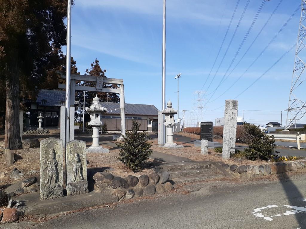 恐らくはこの一対の柱は嘗て鳥居が立っていたのであろう。駐車スペースもこの場所に確保されているので、この一角に停めてから参拝を行った。