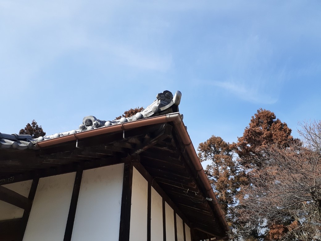 参拝を終えて何気に振り返ったところ、瓦に不思議な紋があった。「菊水紋」である。