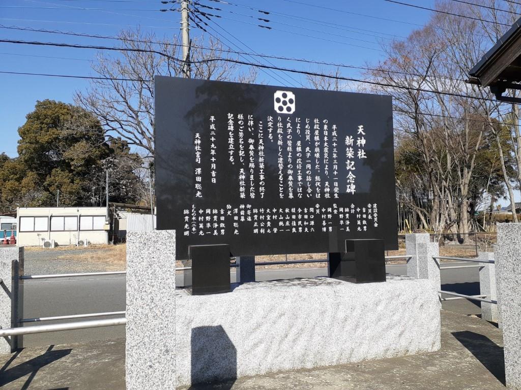 社蔵資料として宝暦六年(一七五六)の社殿棟札がある。これには「祭主高橋内記源照朝」「願主江戸下谷各〇籐八郎」「世話人筑井平四郎・恩田伴七・福田杢右衛門・高橋武兵衛」らの名が見える。また、元文四年(一七三九)から宝暦五年(一七五五)までの十七年間をかけて、神官が氏子から毎年二季の初穂を取り集めて金二〇両を調え、社殿の造営費に充てた旨が記されている。