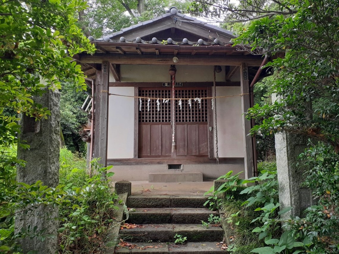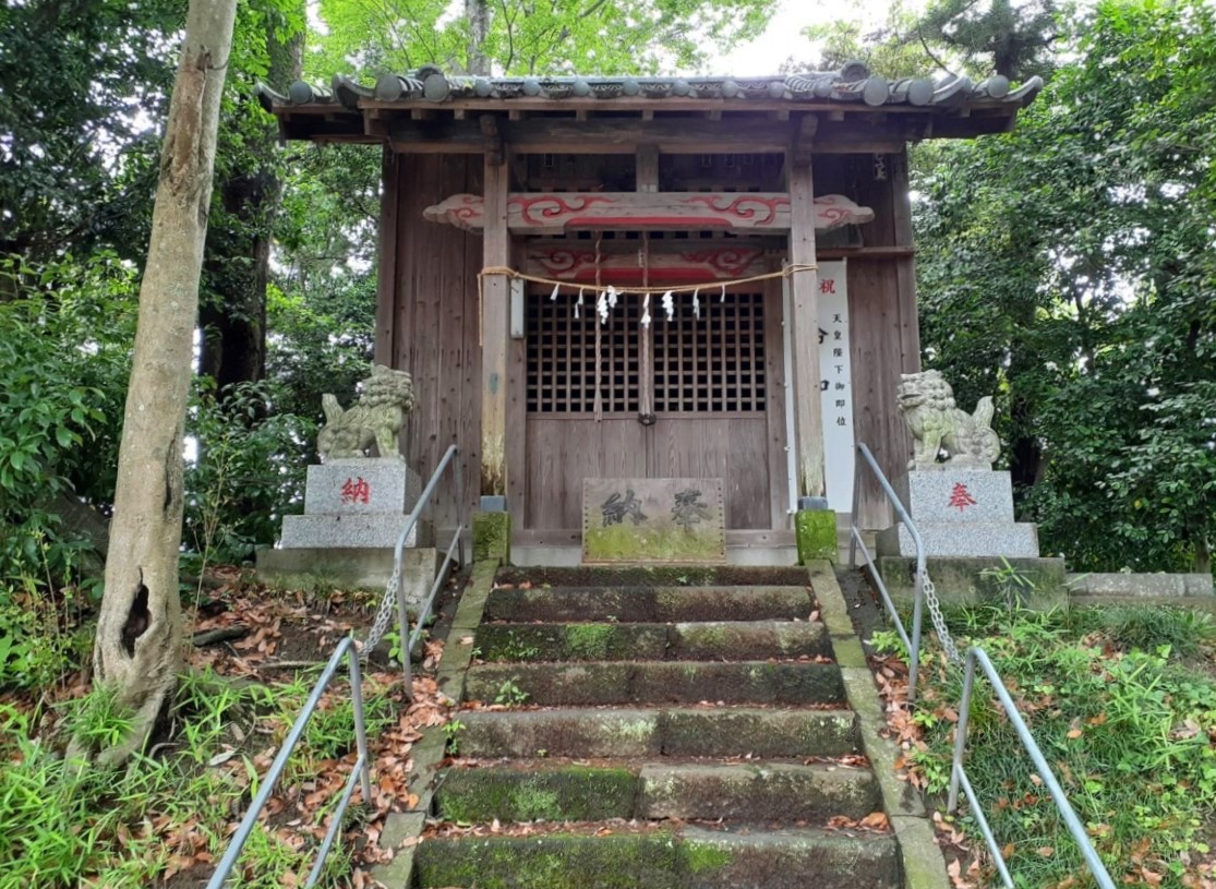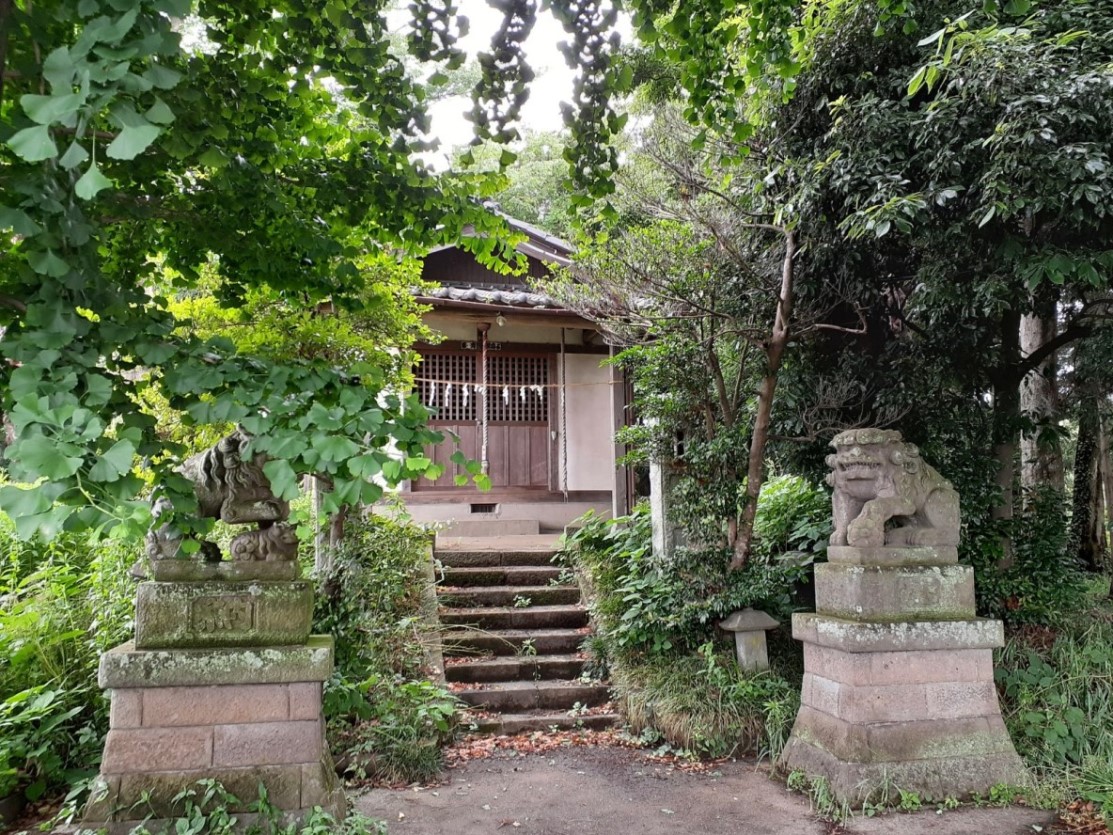 当社は、更に、文久二年(一八六二)には本殿、慶応三年(一八六七)には拝殿が造営されたと伝えられ、明治四年に村社となった。境内は、集落の北端近くにあり、樹齢三〇〇年以上といわれる本殿裏の神木の杉に、歴史の古さが感じられる。当社の境内には、本殿と拝殿の造営に伴って奉納されたと思われる手水鉢が一基ずつあるが、そのうち慶応銘のものは手水鉢には珍しく猫足である。