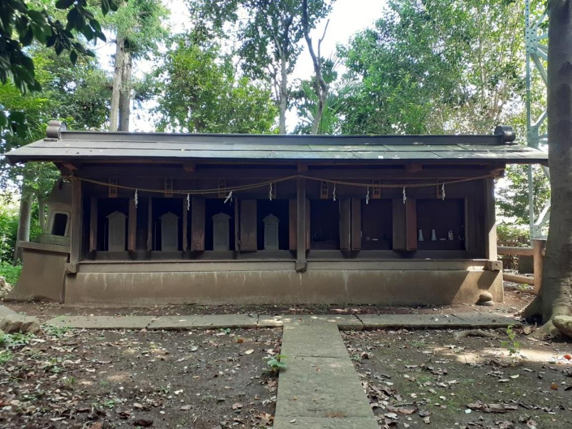 拝殿左側には境内社の合殿が鎮座