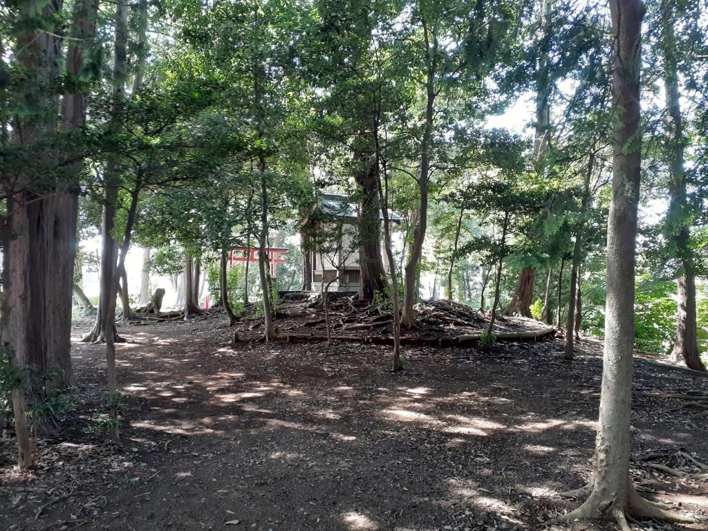 公園内から脚折雷電社を望む。