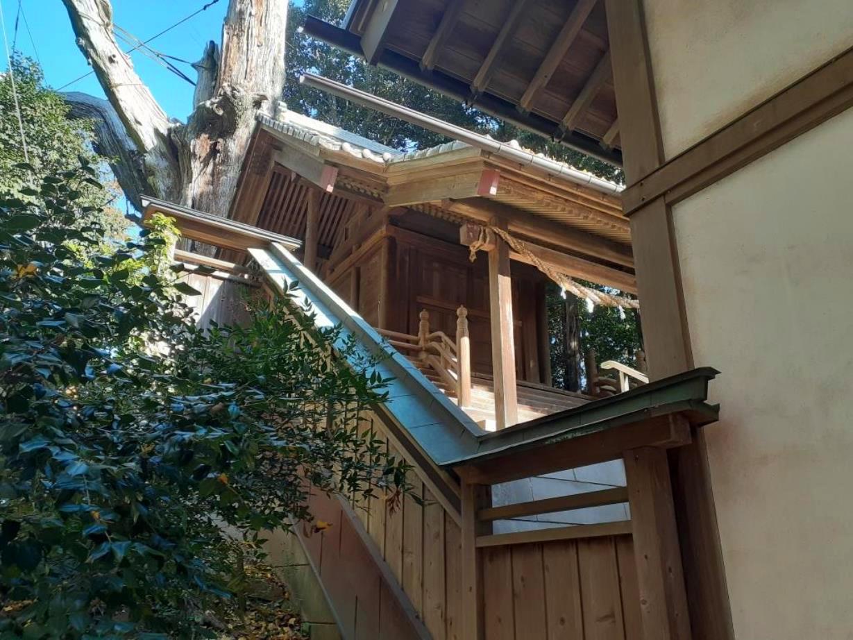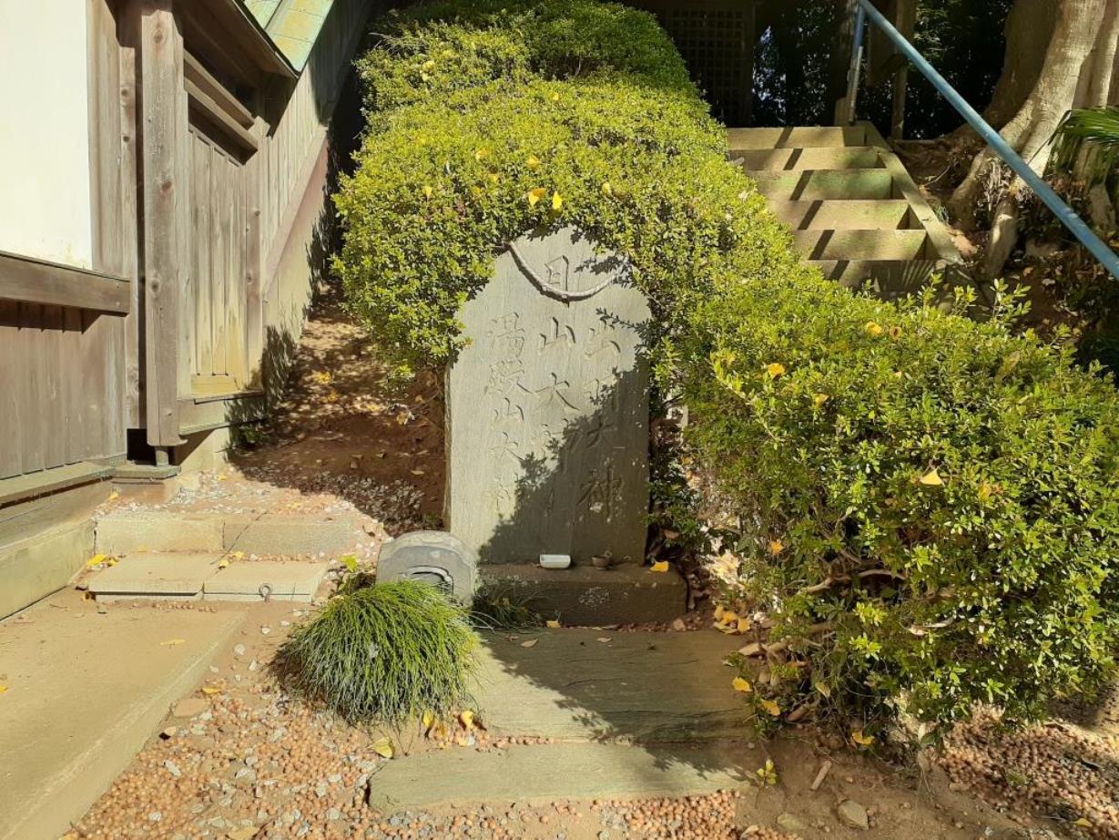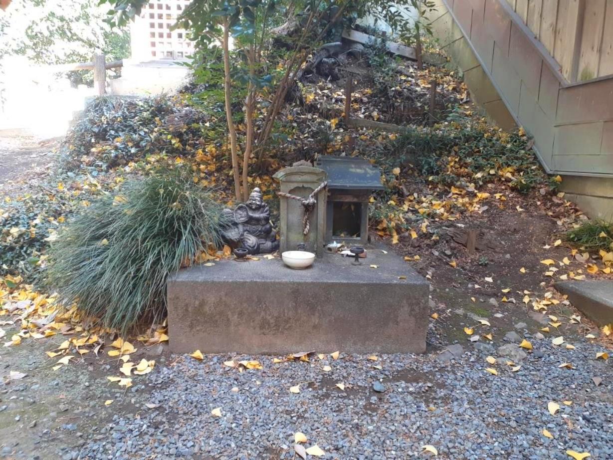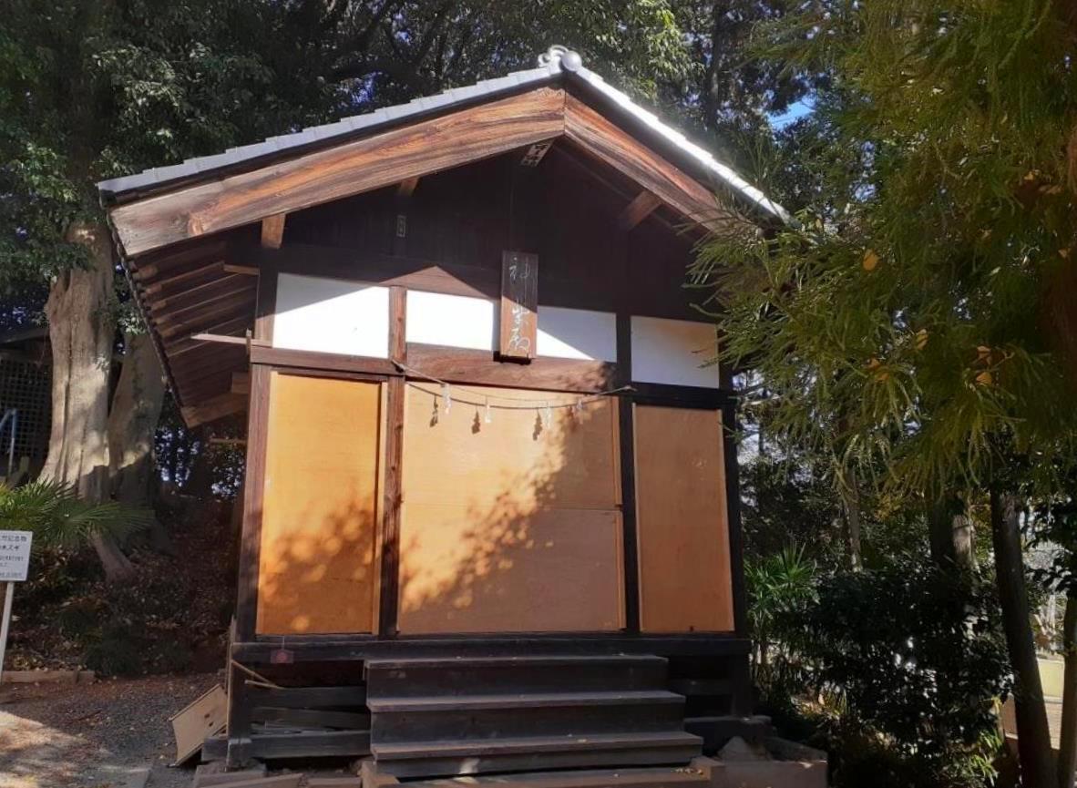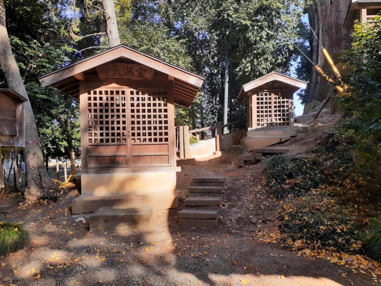 拝殿に対して左側に祀られている境内社・愛宕社 向かって右側には境内社・稲荷社が2基鎮座