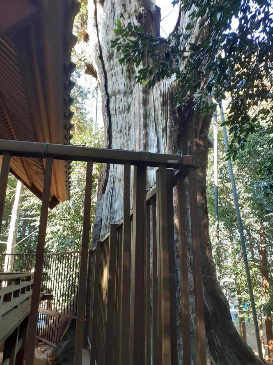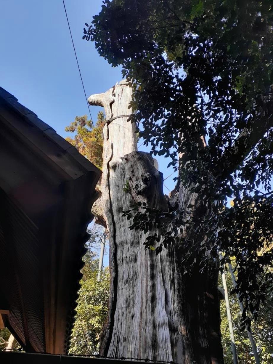 本殿に対して右側に聳え立つ巨木(写真左・右)