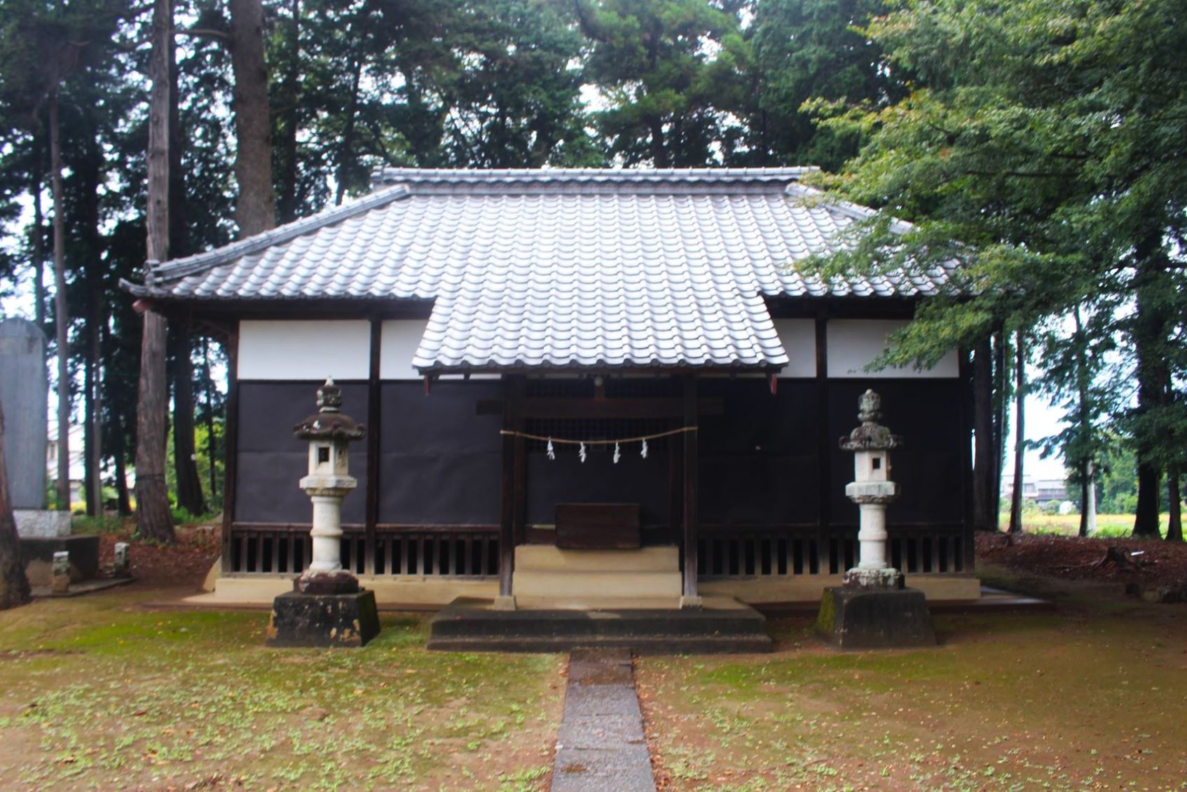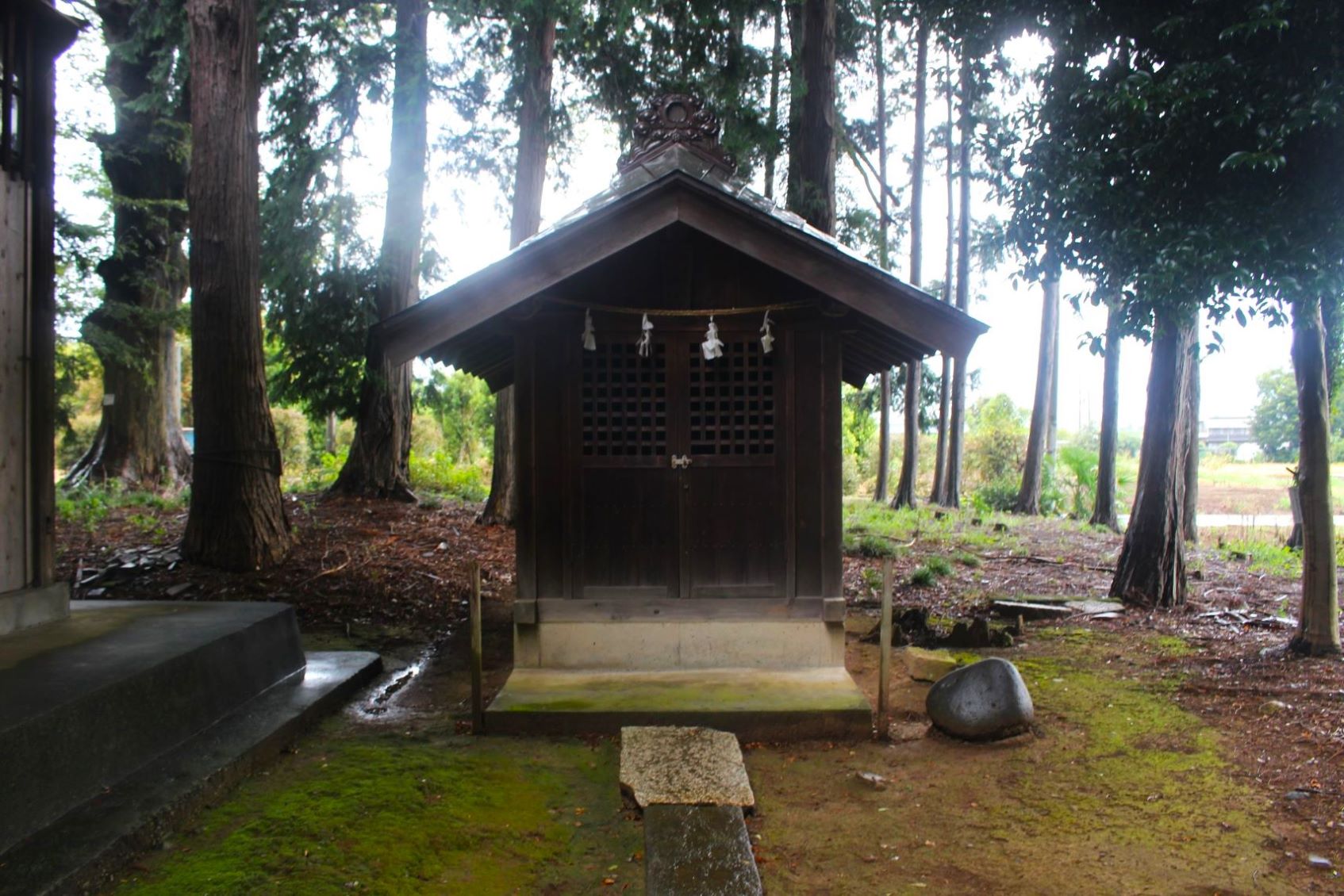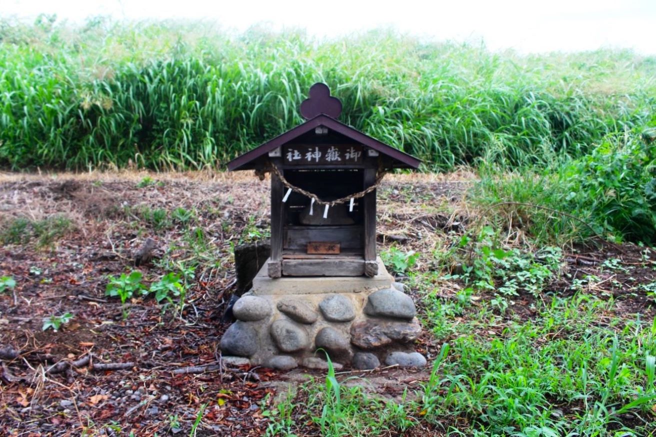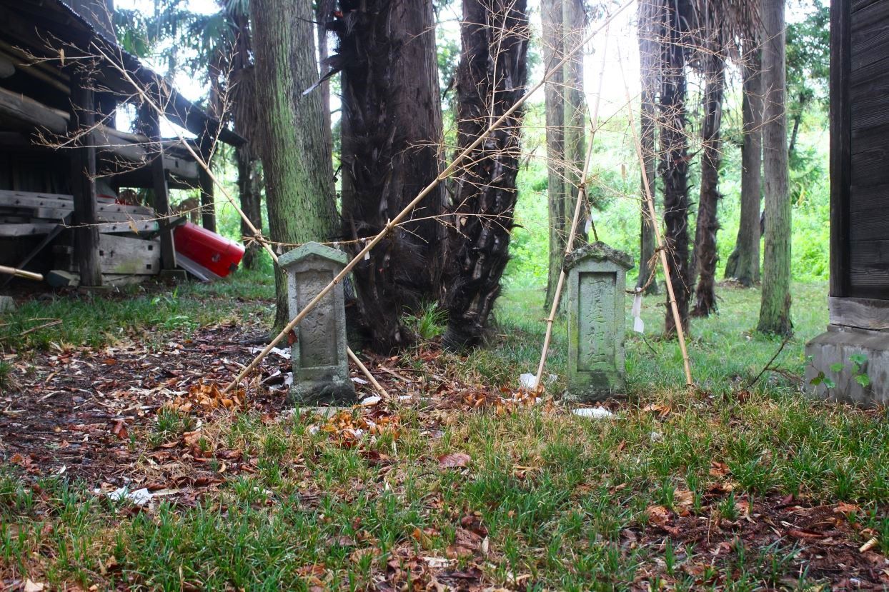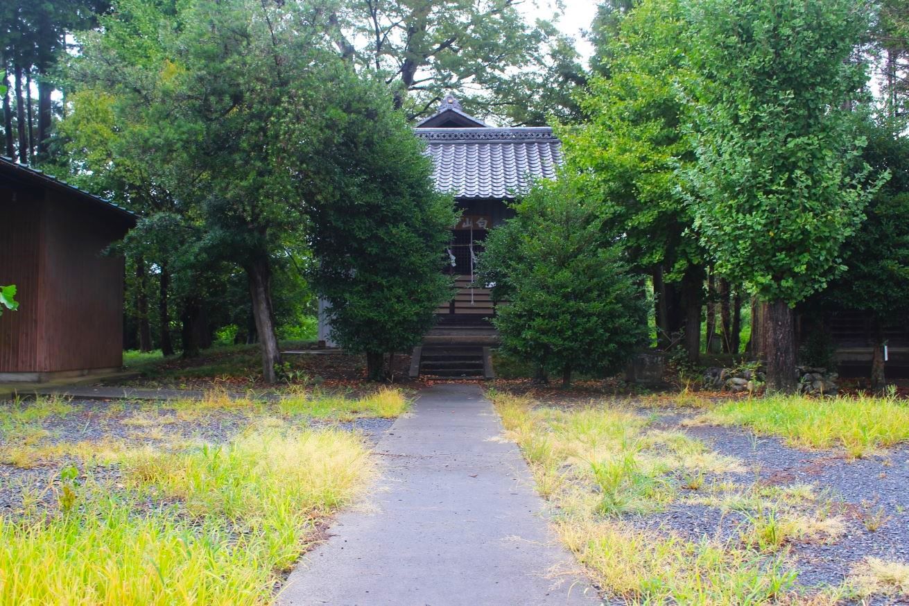 グーグルマップを確認すると、そこは四差路の交点にあたり、社はその四差路の北側に鎮座している。社の東側には「戸宮東集会所」があるが、集会所沿いにはロープが張ってあり、駐車スペースはあってもそこに停めることができず、道路沿いにある集会所から社入り口の僅かのスペースに路駐し、急ぎ参拝を行った。
