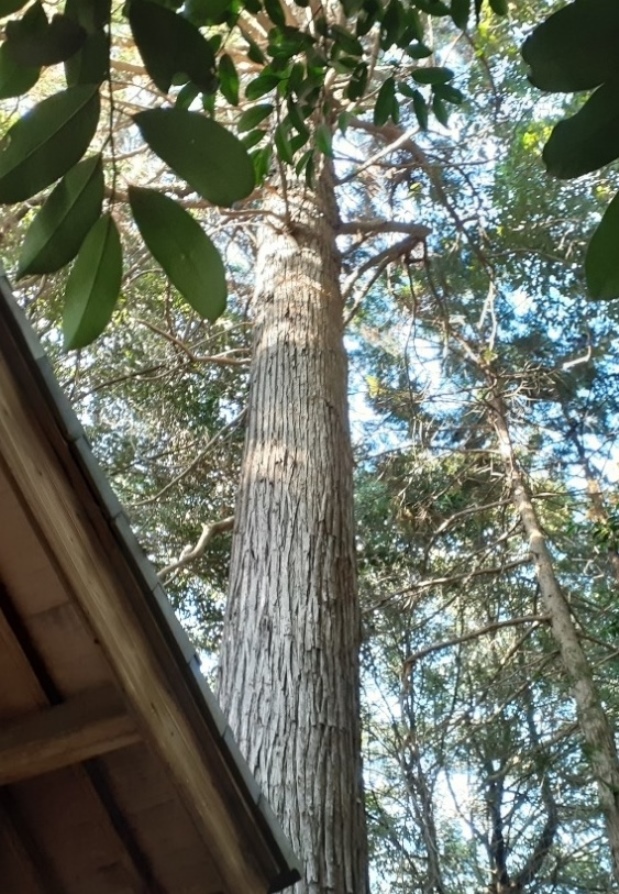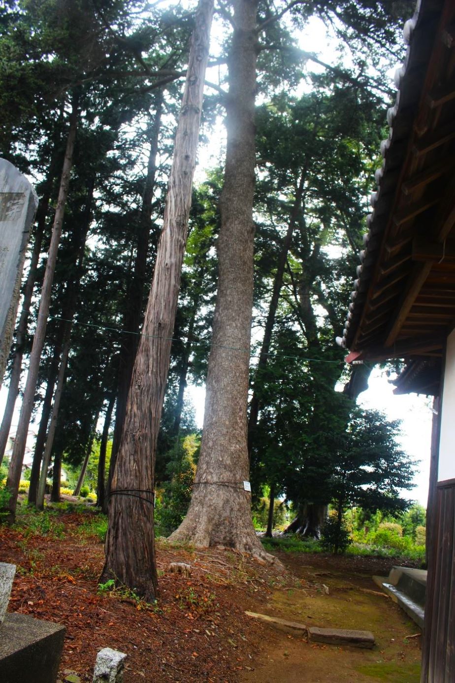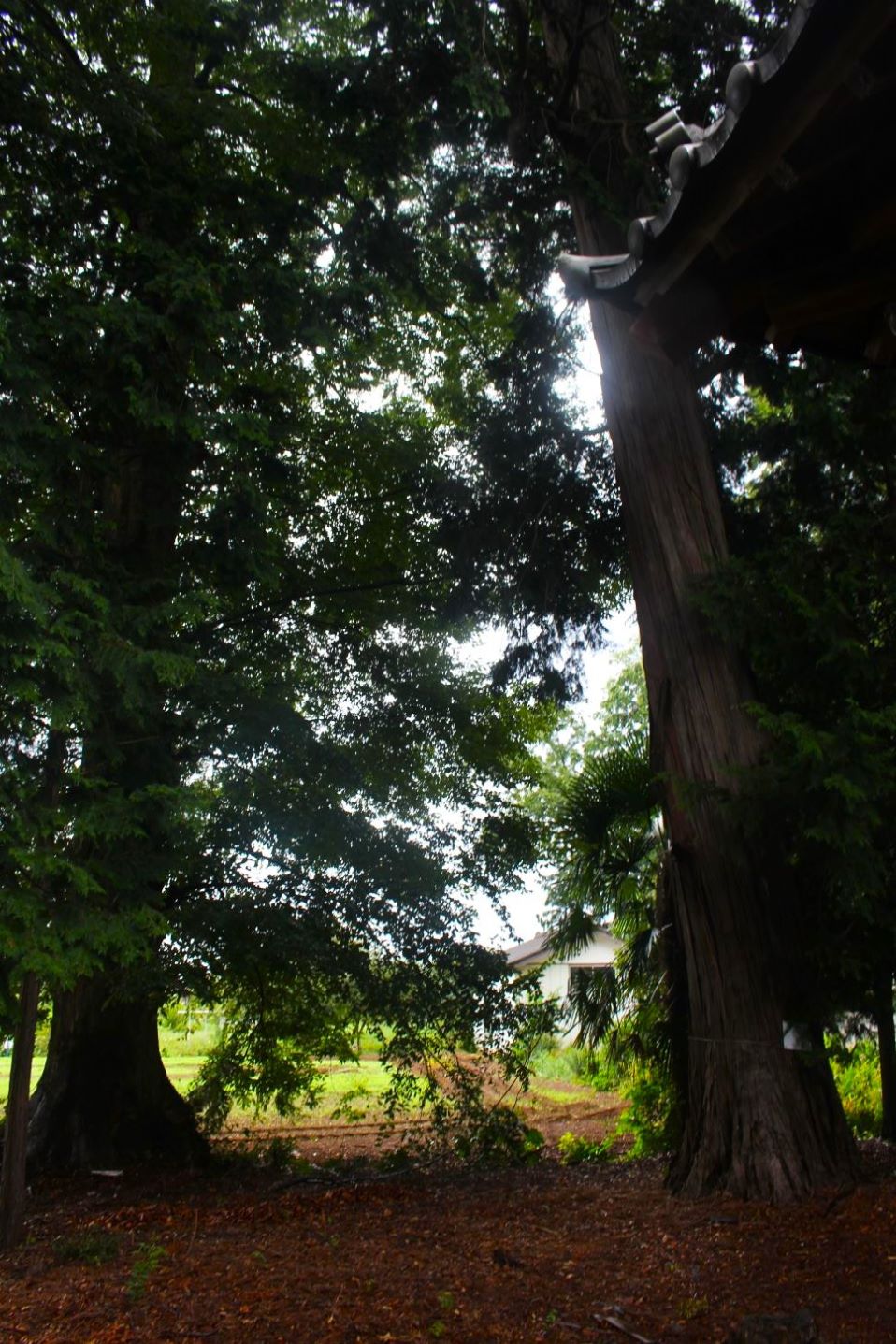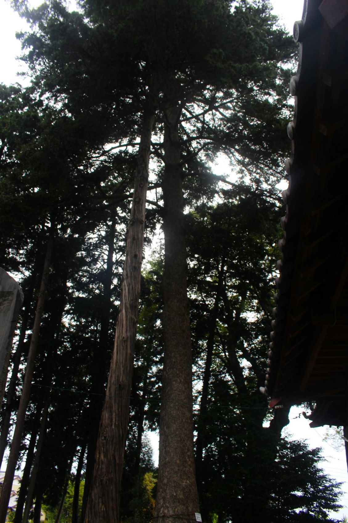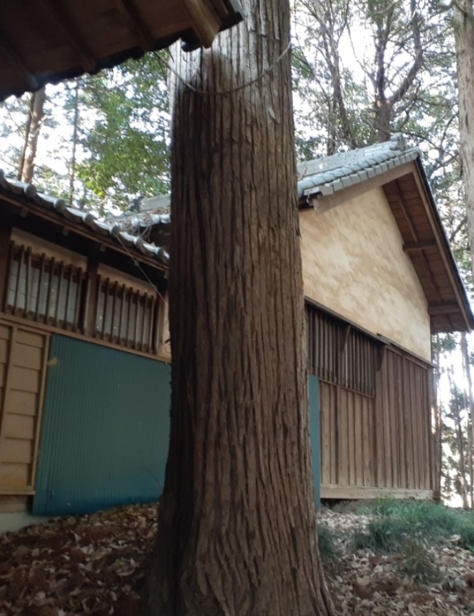 社殿右側で、幣殿部近くに立派に聳え立つ大杉(写真左・右)