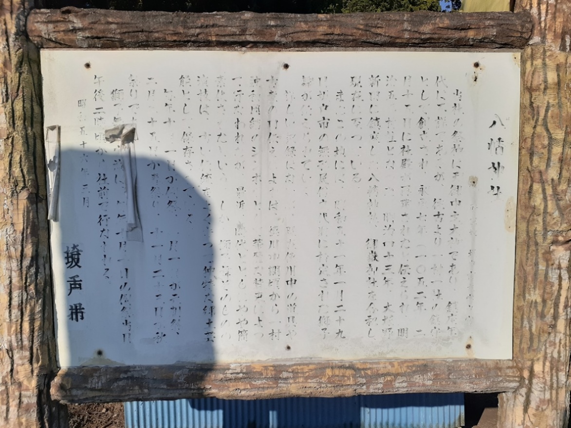 入口右側には戸宮八幡神社の由緒書きが記されている案内板が設置されている。