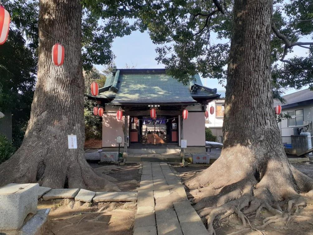 本殿は権現造で、本殿内に納められている箱には宝暦六年(一七五六)三月の絡が記されている。また、当社には祭礼に用いられる二対の幟旗がある。一つは天保六年(一八三五)八月のもので町内の川島で私塾を開いていた尾花善貞、もう一対は、慶応四年(一八六八)正月のもので、爪田ヶ谷村(現白岡町)の医師富沢永惇の筆になるものである。