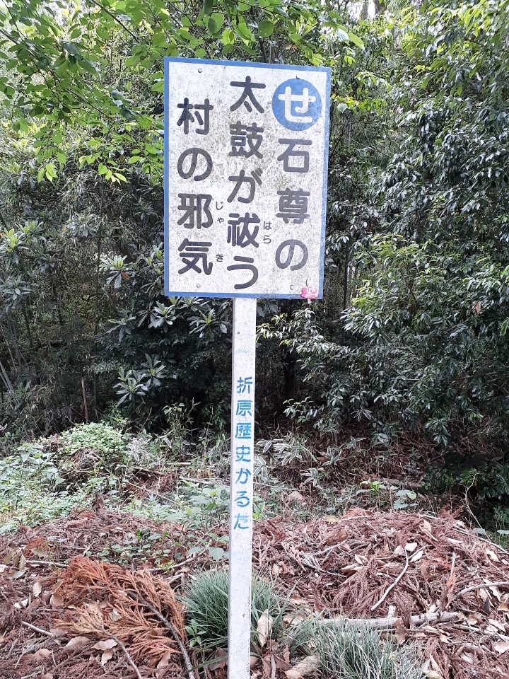 境内に設置された「折原郷土カルタ」の立看板(写真左・右)