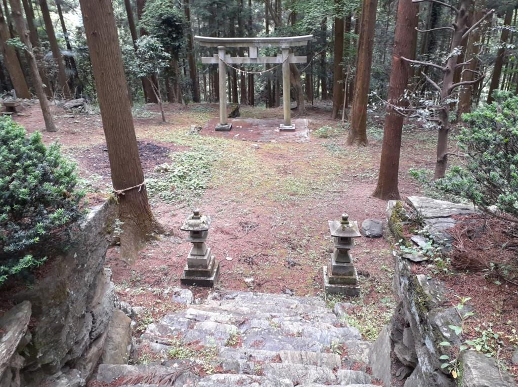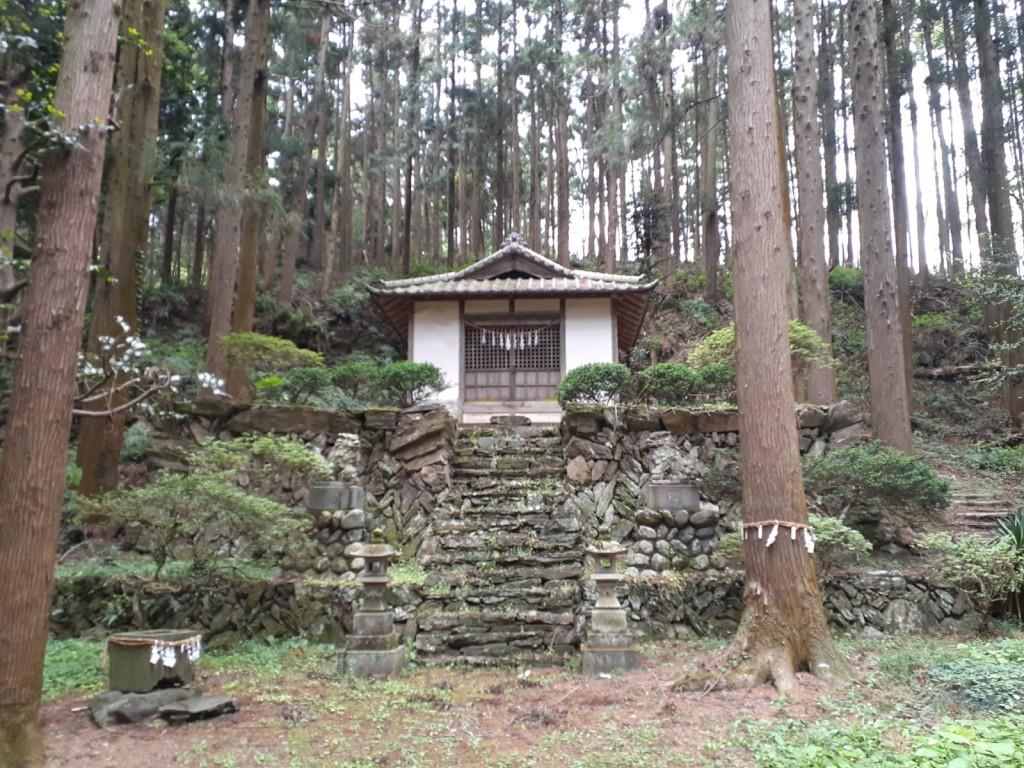 巨石群の基壇上に鎮座する境内社・高山石尊神社