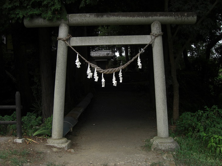 社の東側にある社号標 参道を進むと正面に鳥居がある。
