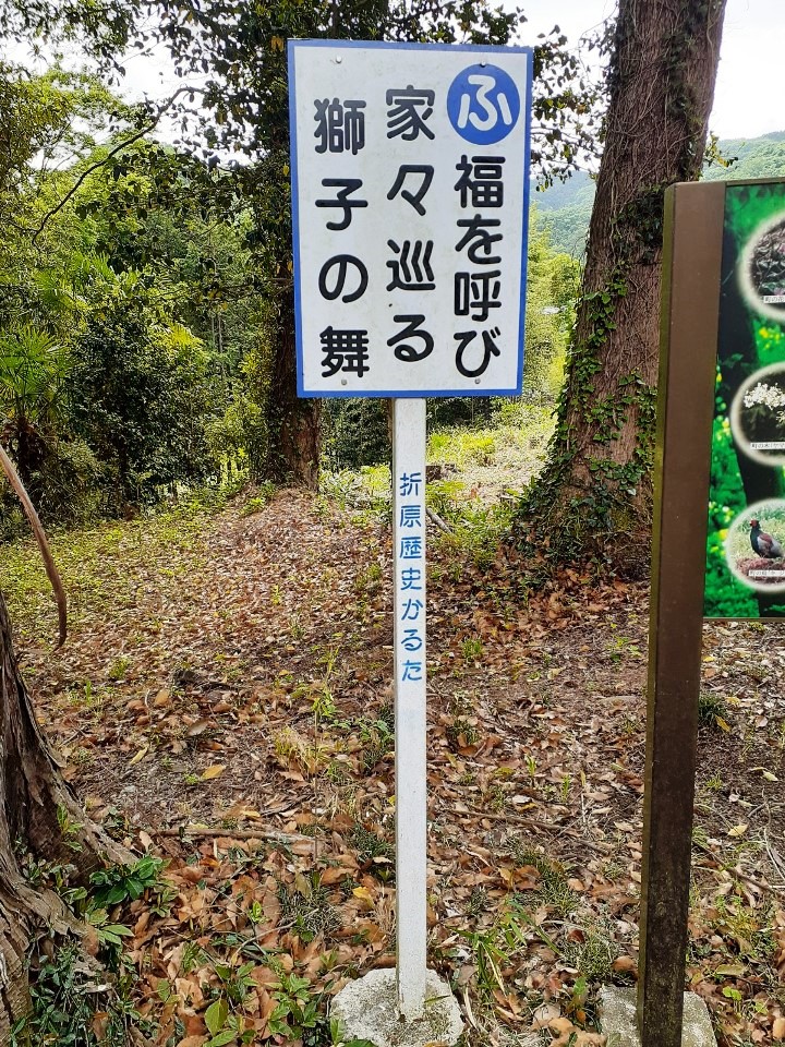 境内に設置された「折原郷土カルタ」の立看板(写真左・右)