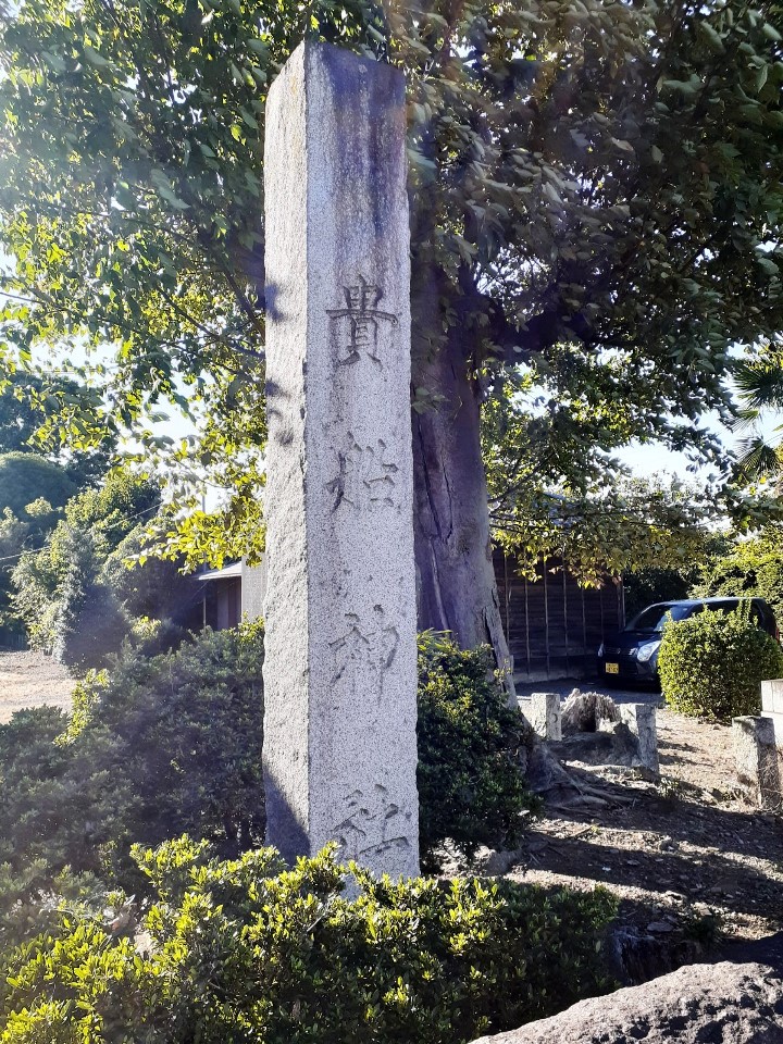 拝殿の手前で左側には御神木である椋の木が聳えている。