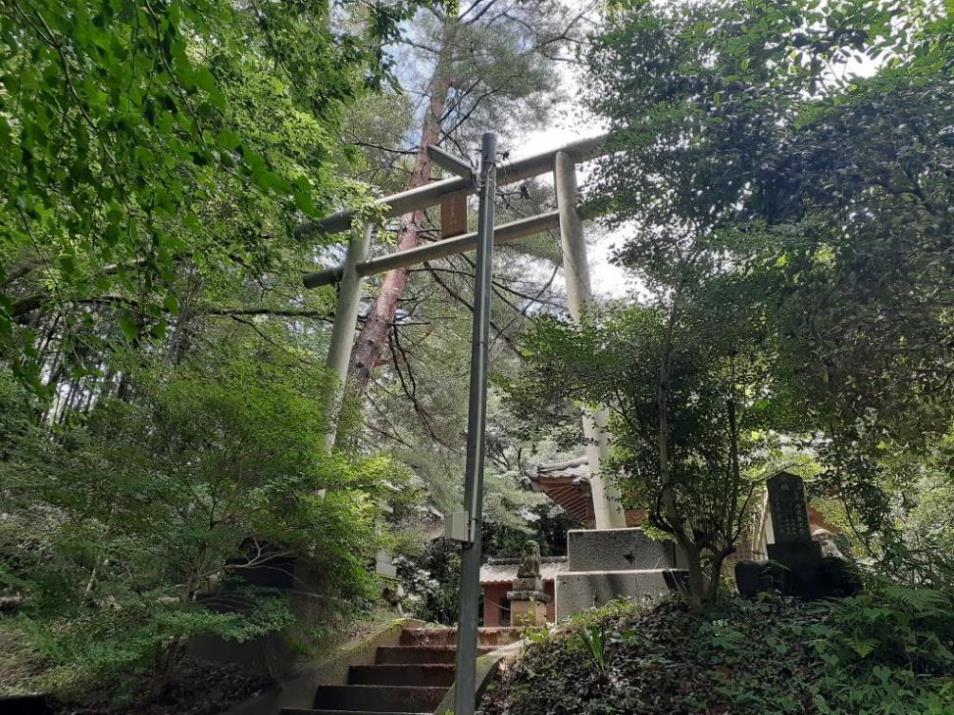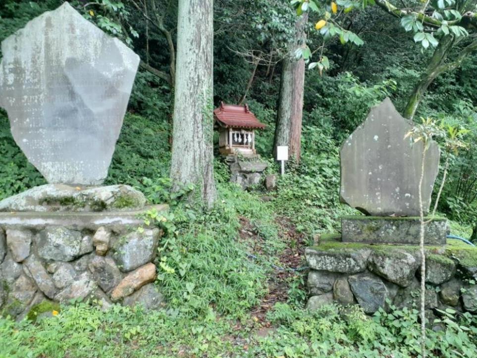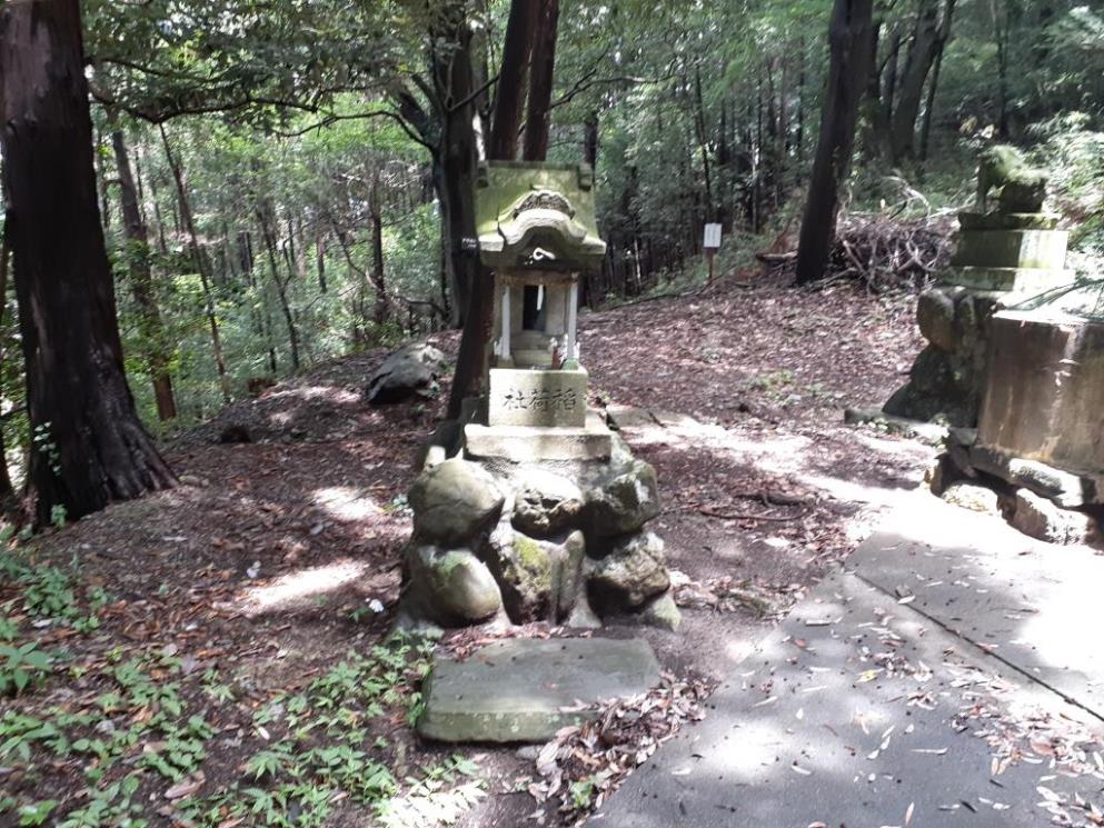 石段を登り終えたすぐ左手にある稲荷社の石祠 稲荷社の反対側に祀られている氏神