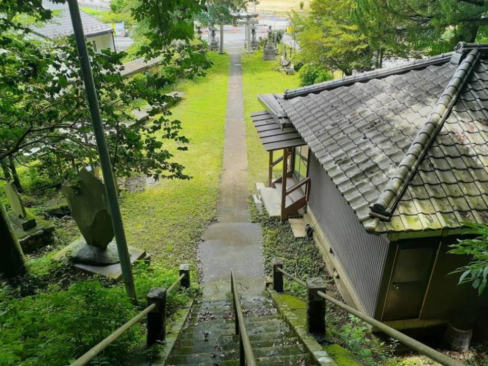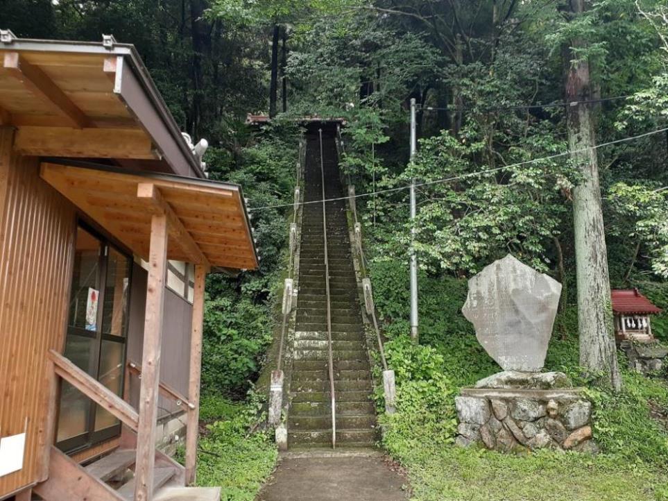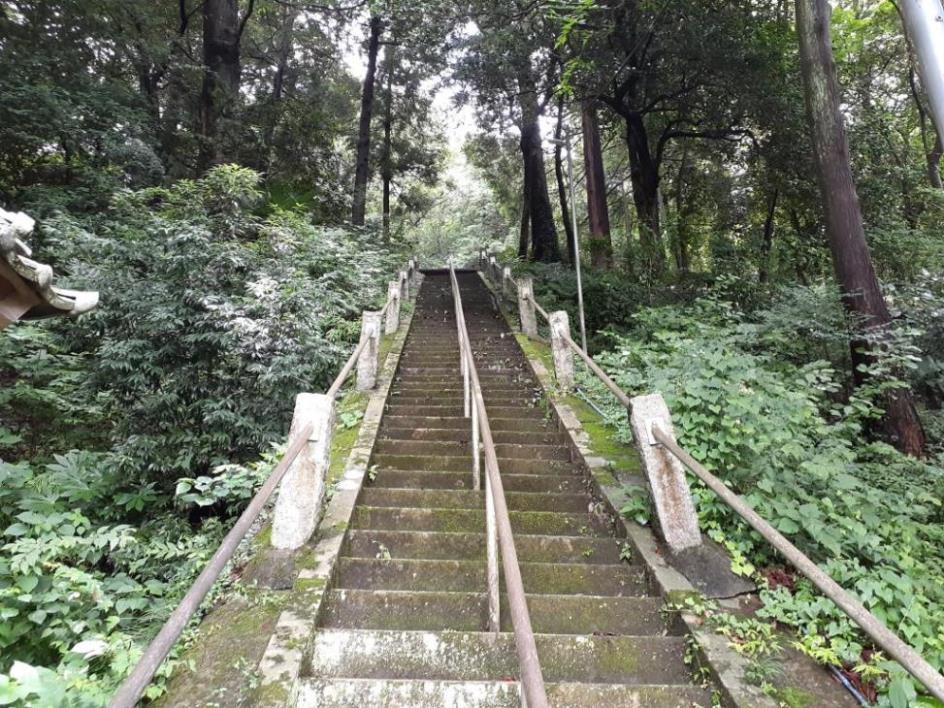 社への石段がかなり急勾配で、所々苔むしているので気をつけて登る。