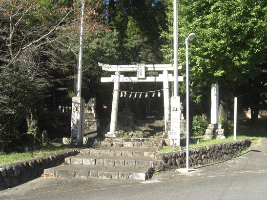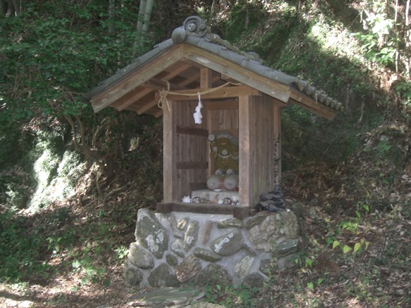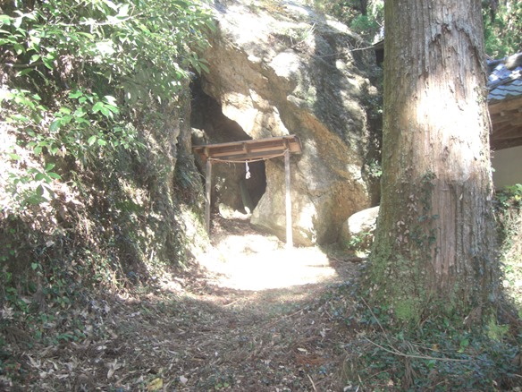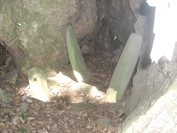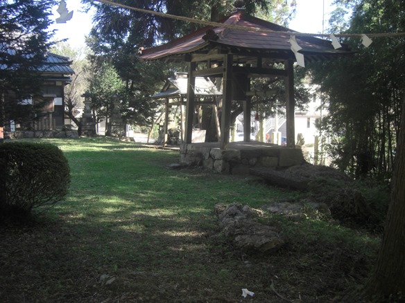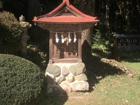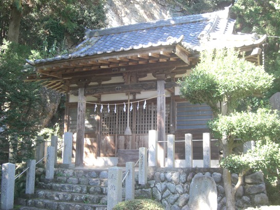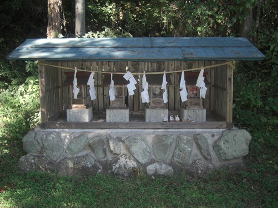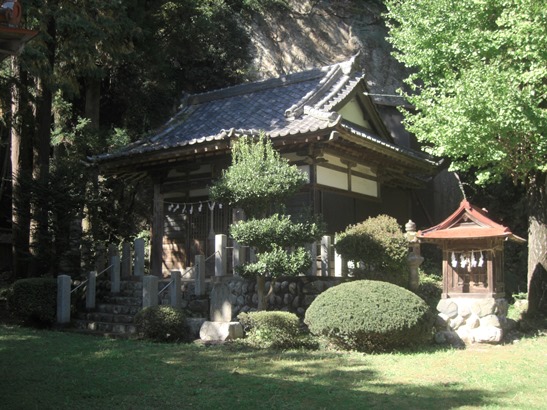 社殿の左手にある鳥居 岩山を祀っていた場所か。 中には石祠が数基ある。