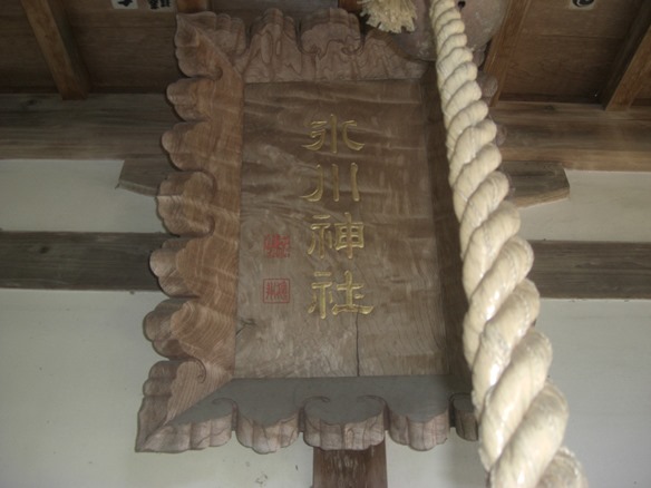 拝殿に掲げてある社号額 社殿の右手、社務所の手前にある案内板