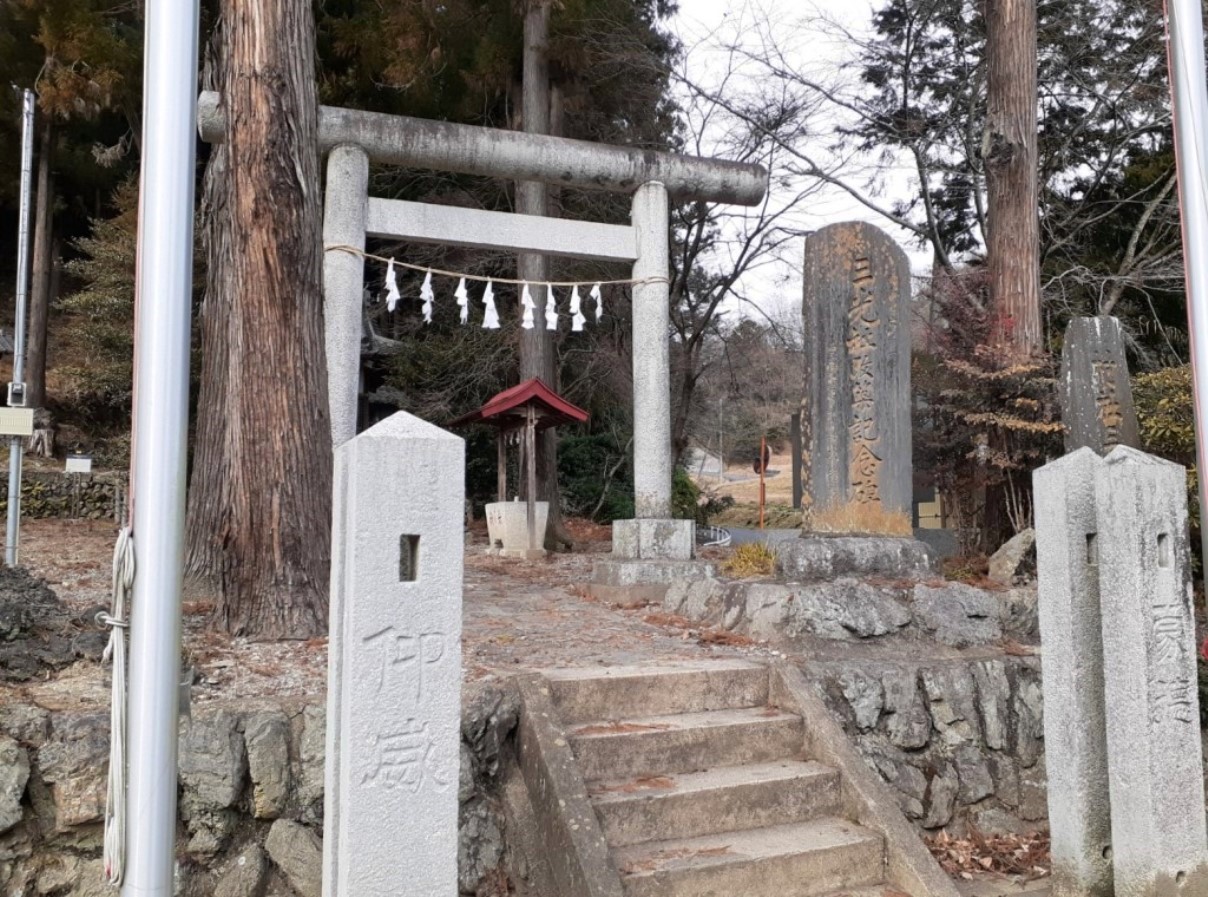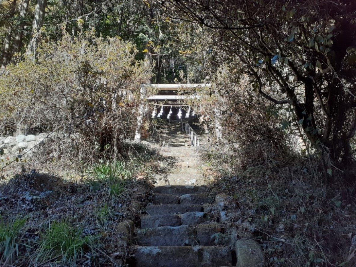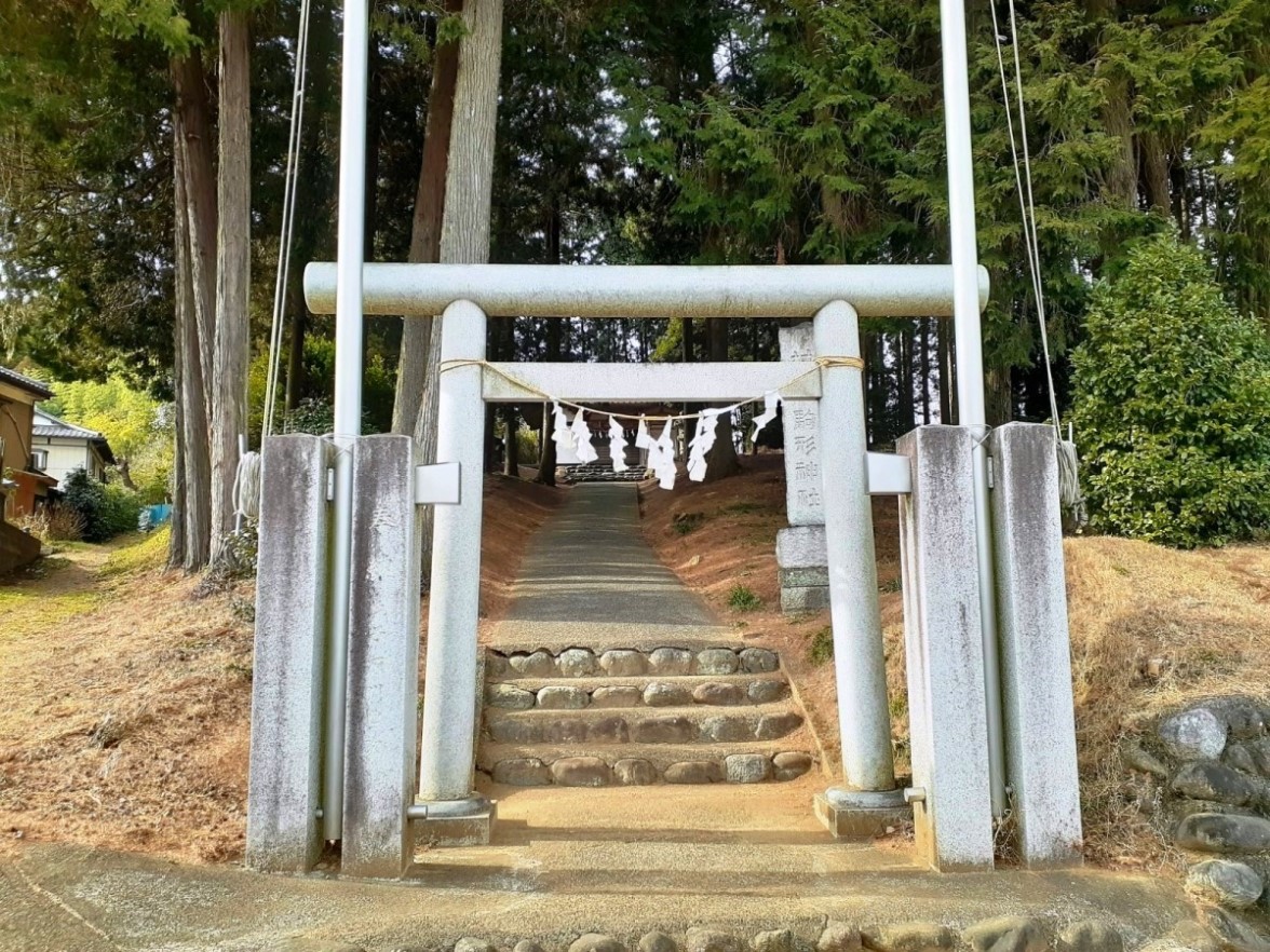 原川駒形神社は笠原諏訪神社の北西100m程の位置に鎮座している。鳥居左側に若干の空間があり、そこに車を停めて急ぎ参拝を行う。小川町原川地区は兜川上流の山間地に位置し、古くは玉川領に属していたが、正保から元禄年間にかけて、竹沢村が六村に分かれた際に原川村として独立したという。
