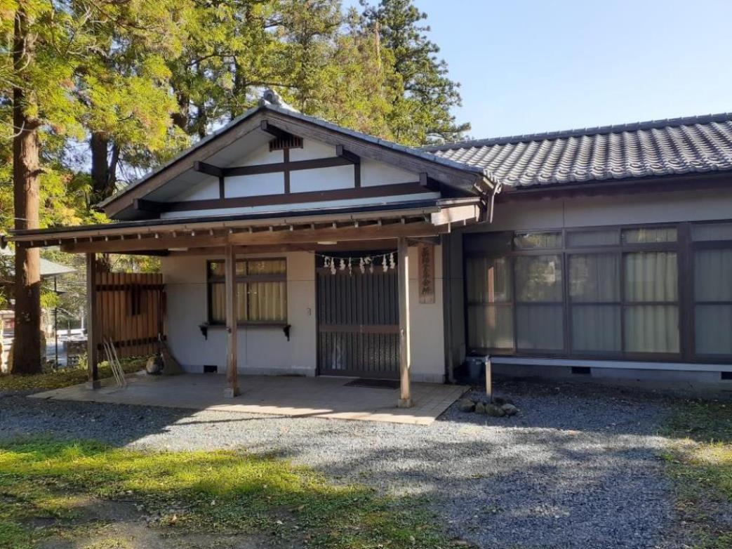 社殿に向かって右側手前には神楽殿 神楽殿の参道を挟んで反対側には社務所