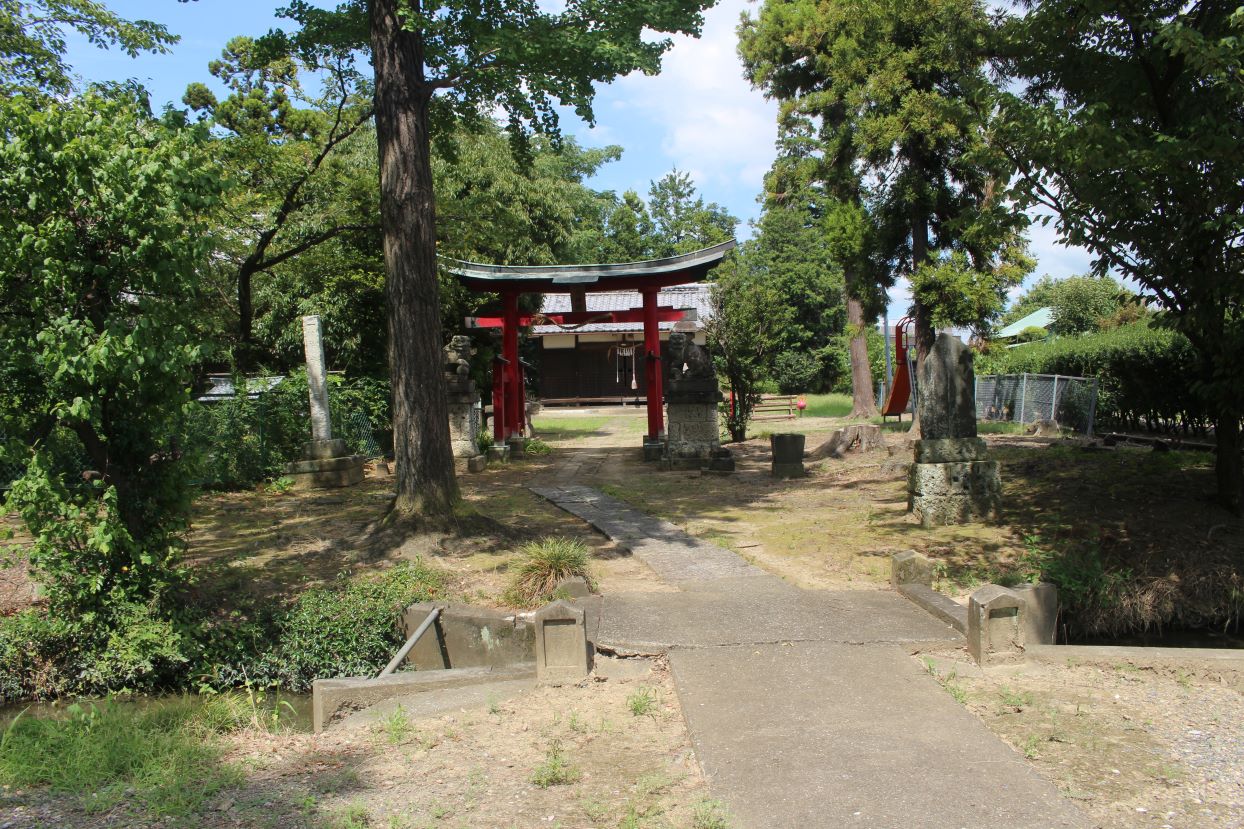 周囲は北側にICの洗練された高架橋が、そして西側には近代的な大型モールが遠くから見える中、対照的に東・南側は川島町特有の沖積低地帯の田畑風景が広がり、集落がその一帯に寄り添いながら点在し、その集落内の真ん中に鎮座する、まさに「鎮守の社」といったような印象。