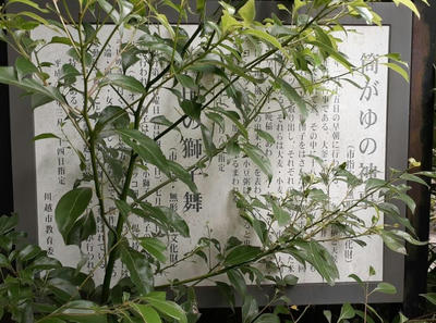境内に設置されている「筒がゆの神事」「石田の獅子舞」の案内板