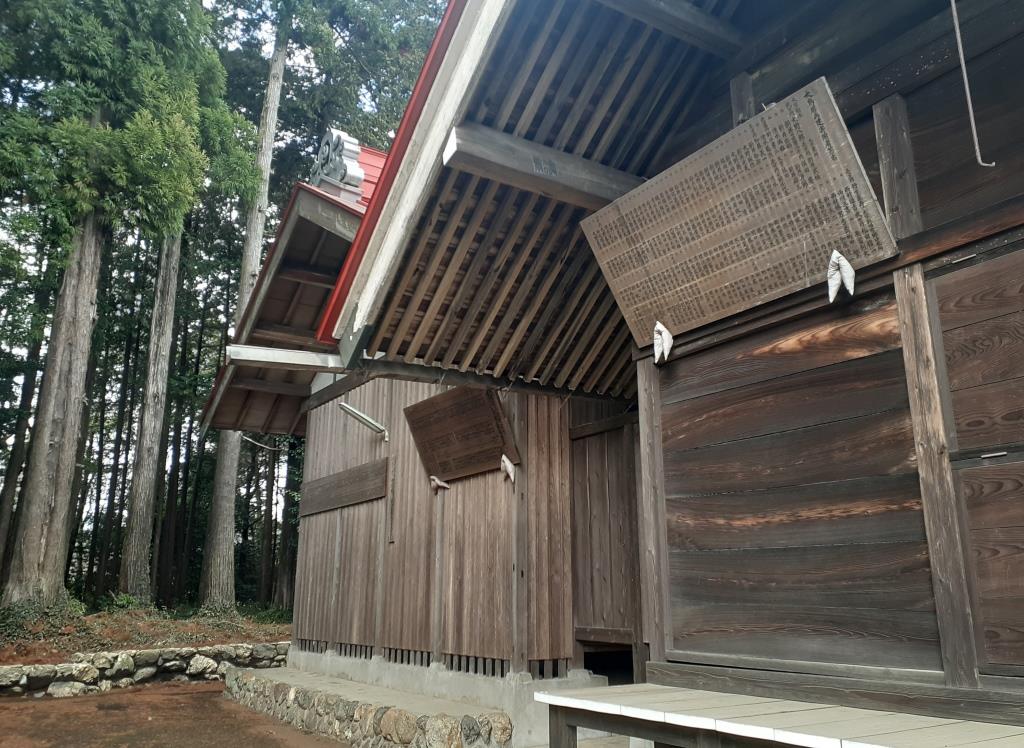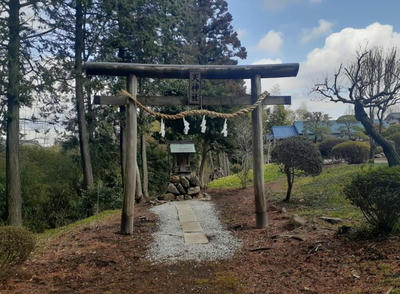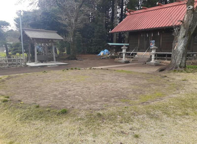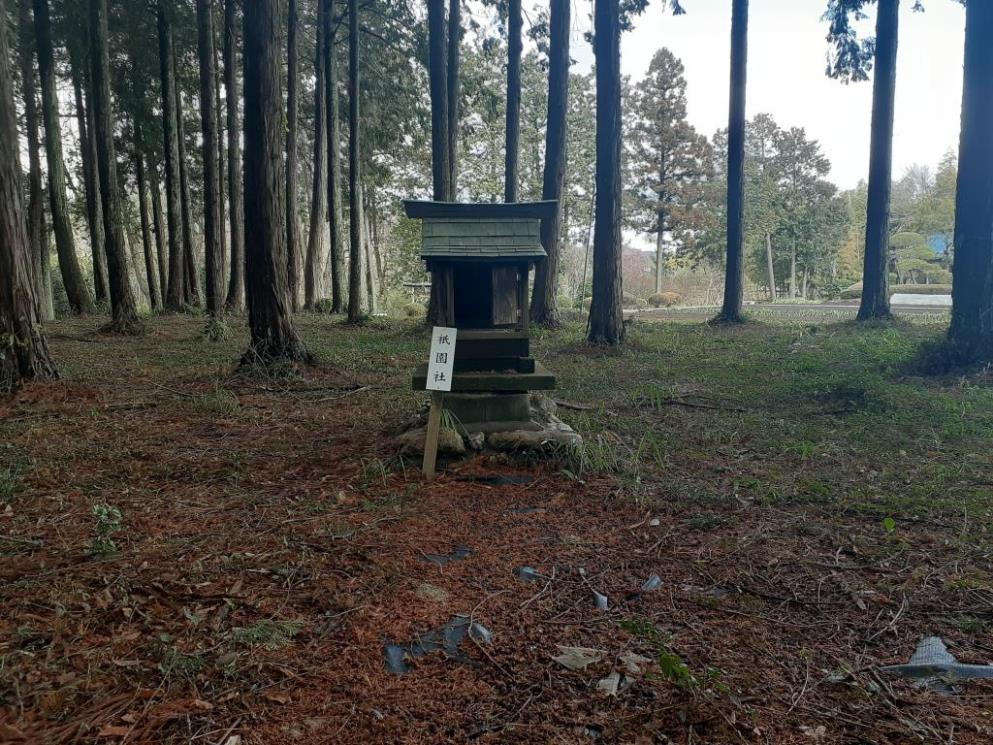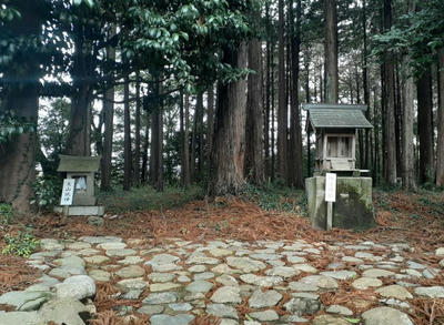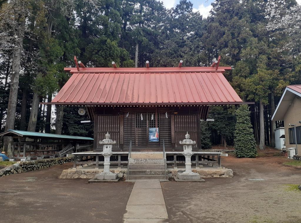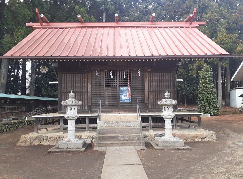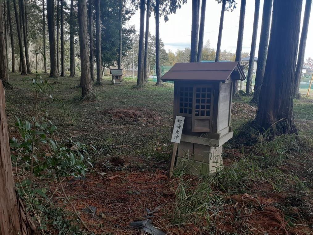 社殿の奥は豊かな杉林が社叢林として密生している。社叢林は植生ではなく自生によって成立した樹叢であることが多いが、この社は現宮司の御先祖が武蔵国大国魂神社から杉の実を持ってきて育てた林という。また、「埼玉の神社」によると、本殿覆屋内に「琴平社・東照宮・祇園社・大山祇社・稲荷社」が祀られているというのだが、社殿奥の社叢林中にも多くの境内社や石祠が祀られていて、上記の社と同名の社も存在している(東照宮以外)。