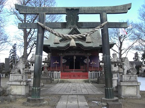 拝殿の手前にある銅製鳥居は本庄市指定特別文化財