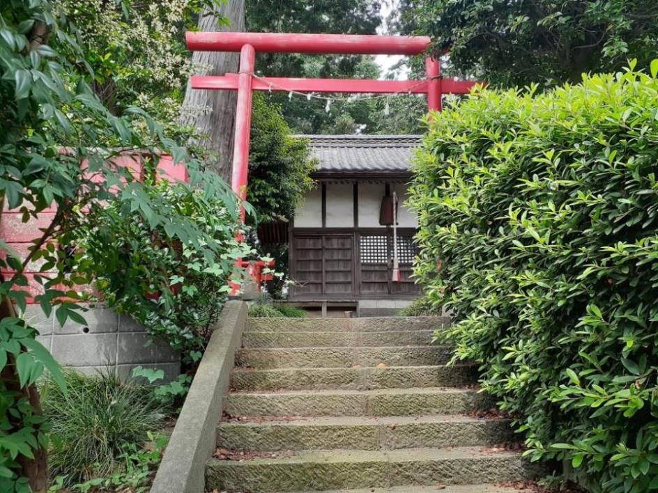 社は越辺川の高坂台地の南斜面にあり、越辺川の左岸低地を見守るように鎮座している。