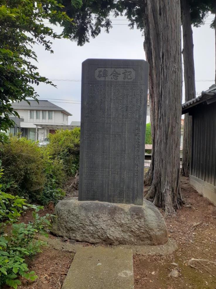左から境内社・八坂神社と愛宕大神の石碑 境内にある「記念碑」