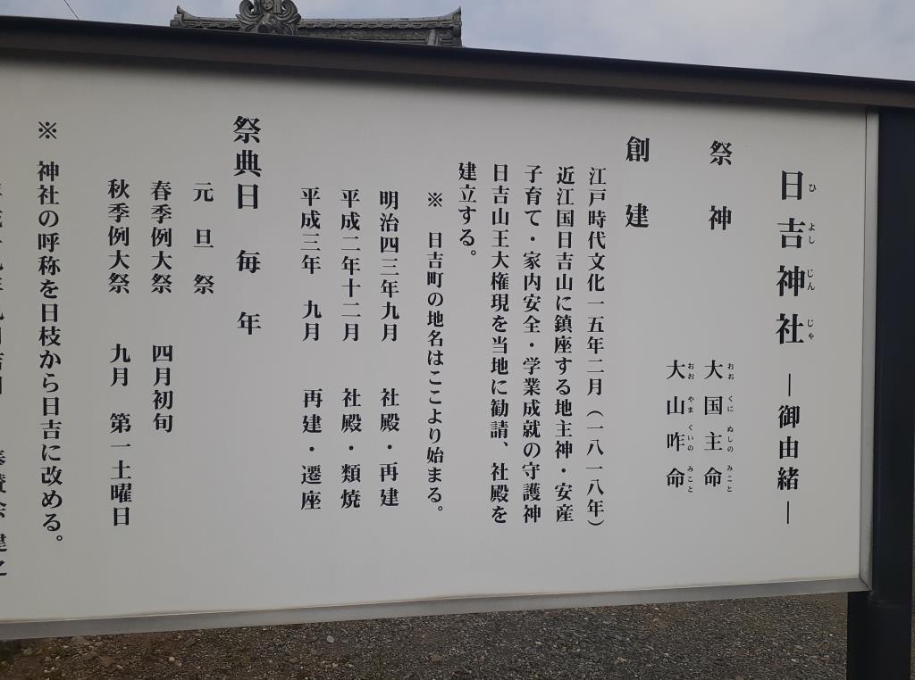 *神社の呼称を日枝から日吉に改める。(以下略) 案内板より引用