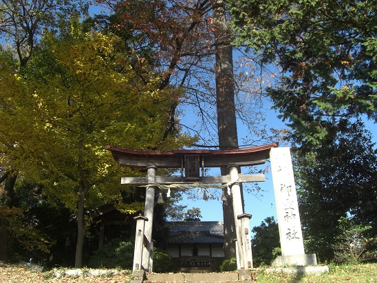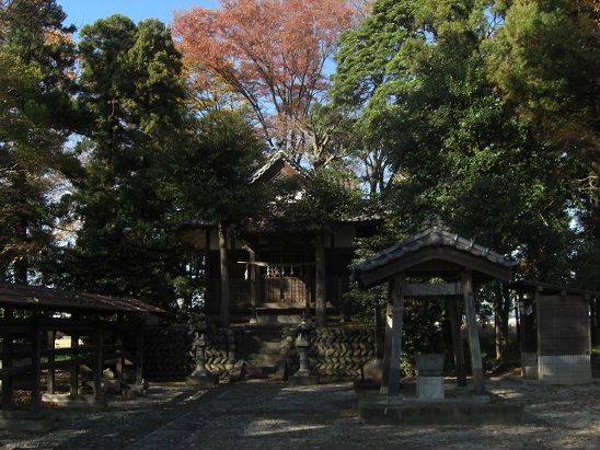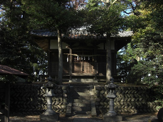都幾川と越辺川の合流地点近くに鎮座する社ゆえに、社殿の地盤基礎部分がやはり高くなっている。洪水対策であろう。