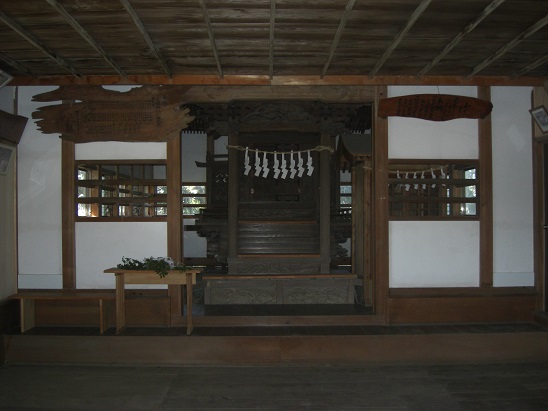拝殿の上部に掲げてある社号額 拝殿内部
