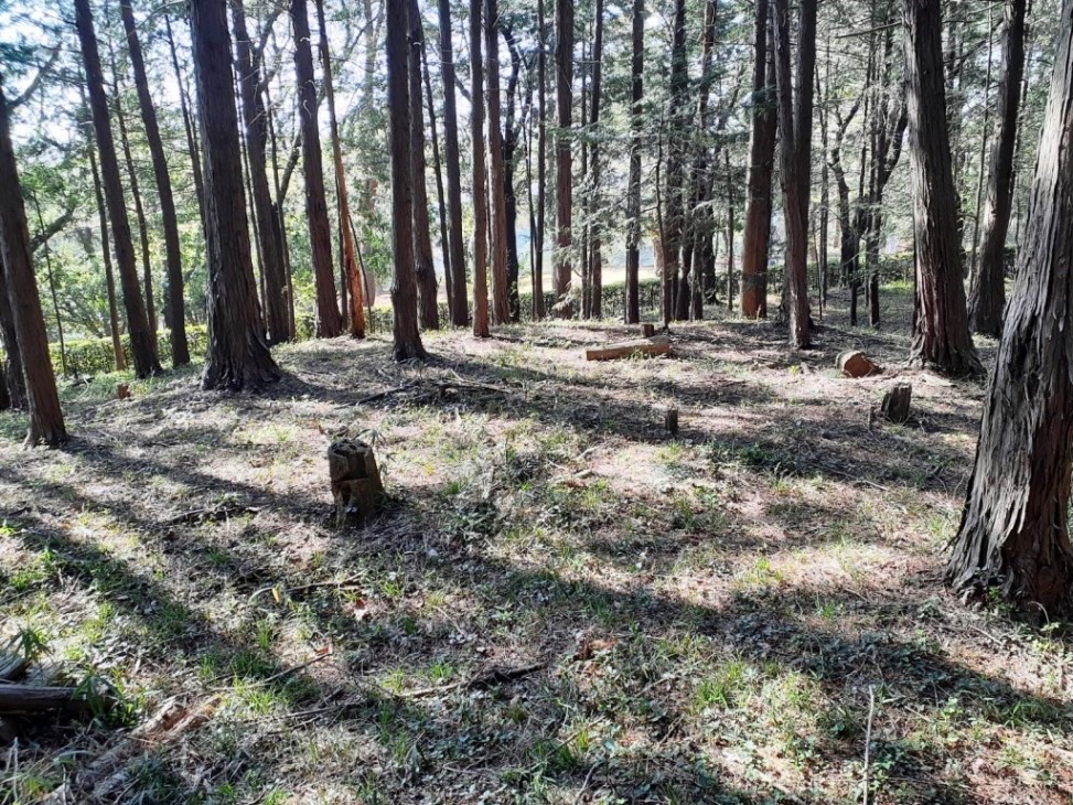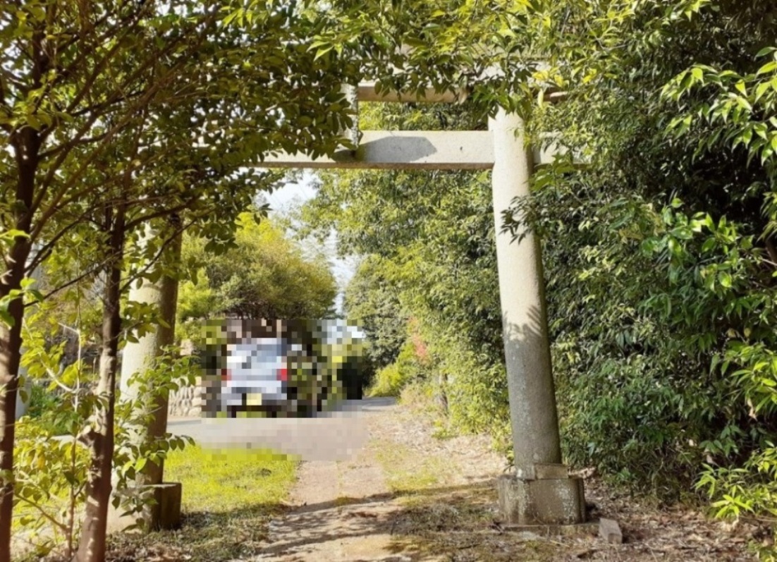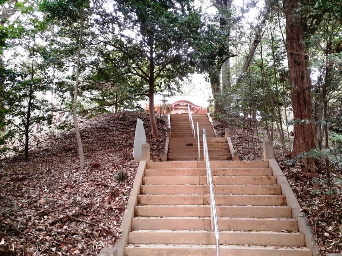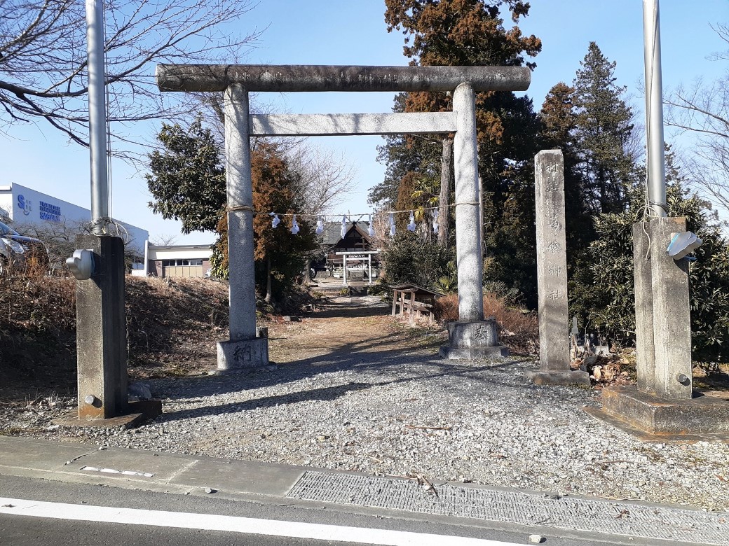 東向きにある参道。参道の両脇には伐採された木々の幹が残っている。伐採される前は、緑豊かな社叢に囲まれていたのだろう。工業団地の造成に会わせて整備されたというが、社は社殿周辺が存在していれば良いという箏ではない。鳥居から参道を含む境内全体の荘厳な雰囲気もまた社の「品格」という意味において必要ではないかと感じた。