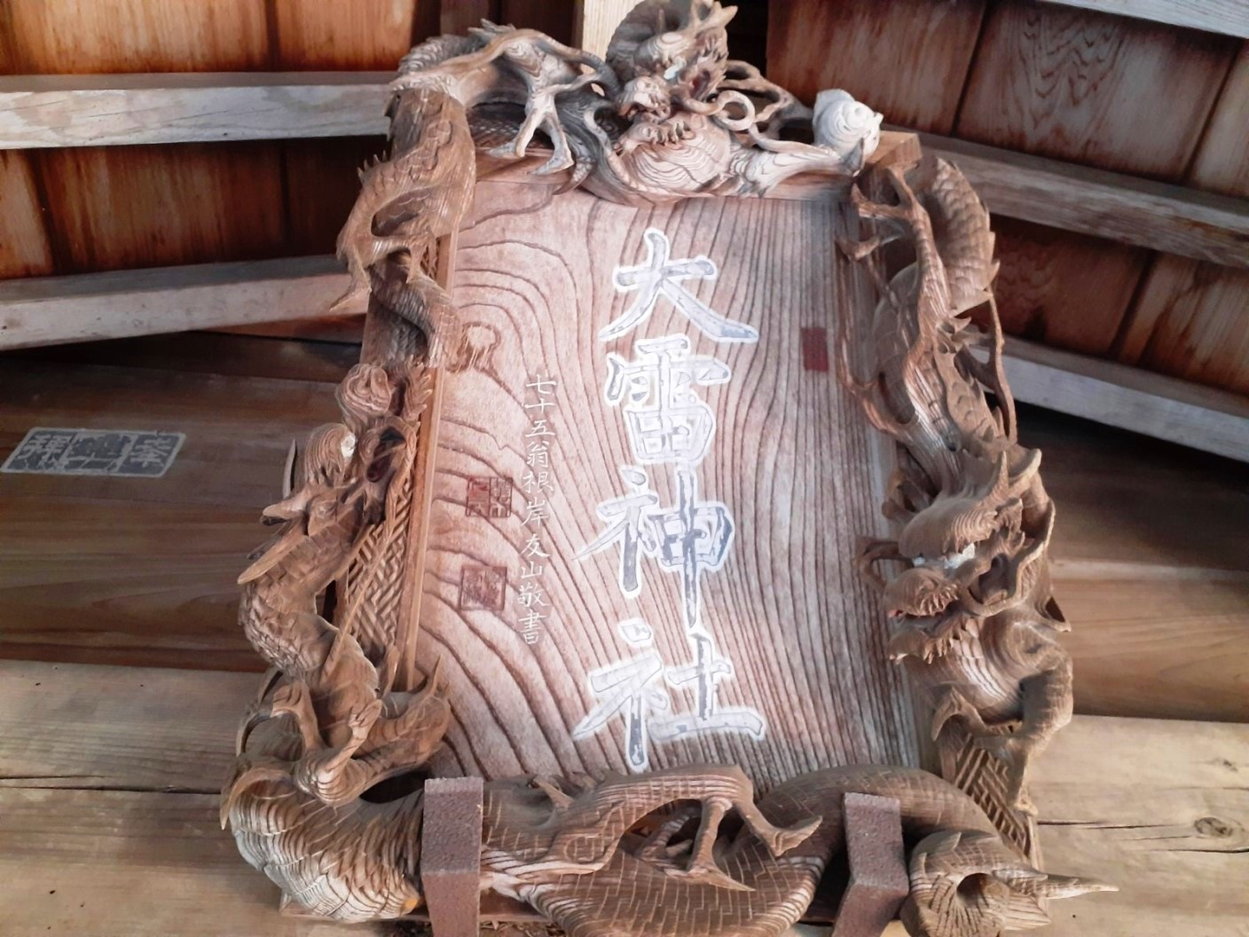 昭和六十一年十一月二十七日不慮の火災により、社殿を焼失し、氏子一同再建を誓い多額の浄財を寄進し、平成元年四月十六日竣工壮麗清浄なる神殿に神霊を奉安す。