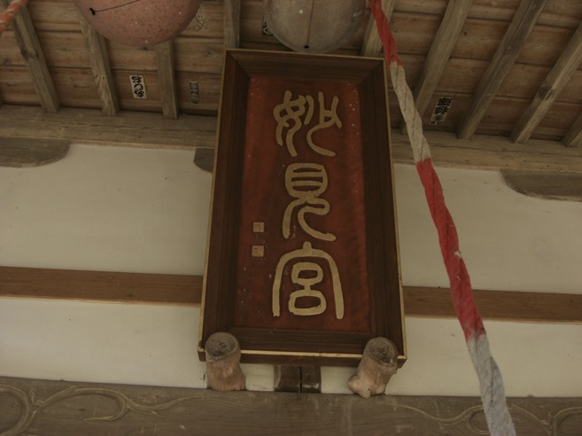 拝殿上部に掲げてある「妙見宮」と表記された扁額。