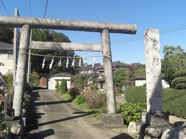 安戸身形神社は埼玉県道11号熊谷小川秩父線を東秩父村役場から約3㎞ほど小川町方向に進む。進行方向左側は県道整備のため山の稜線を削り、その斜面上に大霊神社の鳥居がそそり立つように見えるが、そのすぐ先のT字路を右折する。槻川を超えるとすぐ右側に身形神社の石製の鳥居と社号標が見えてくる。駐車スペースは鳥居のすぐ先の道を右に曲がると帯澤集落センターがあり、そこには十分な駐車スペースが確保されているので、そこに停め参拝を行った。